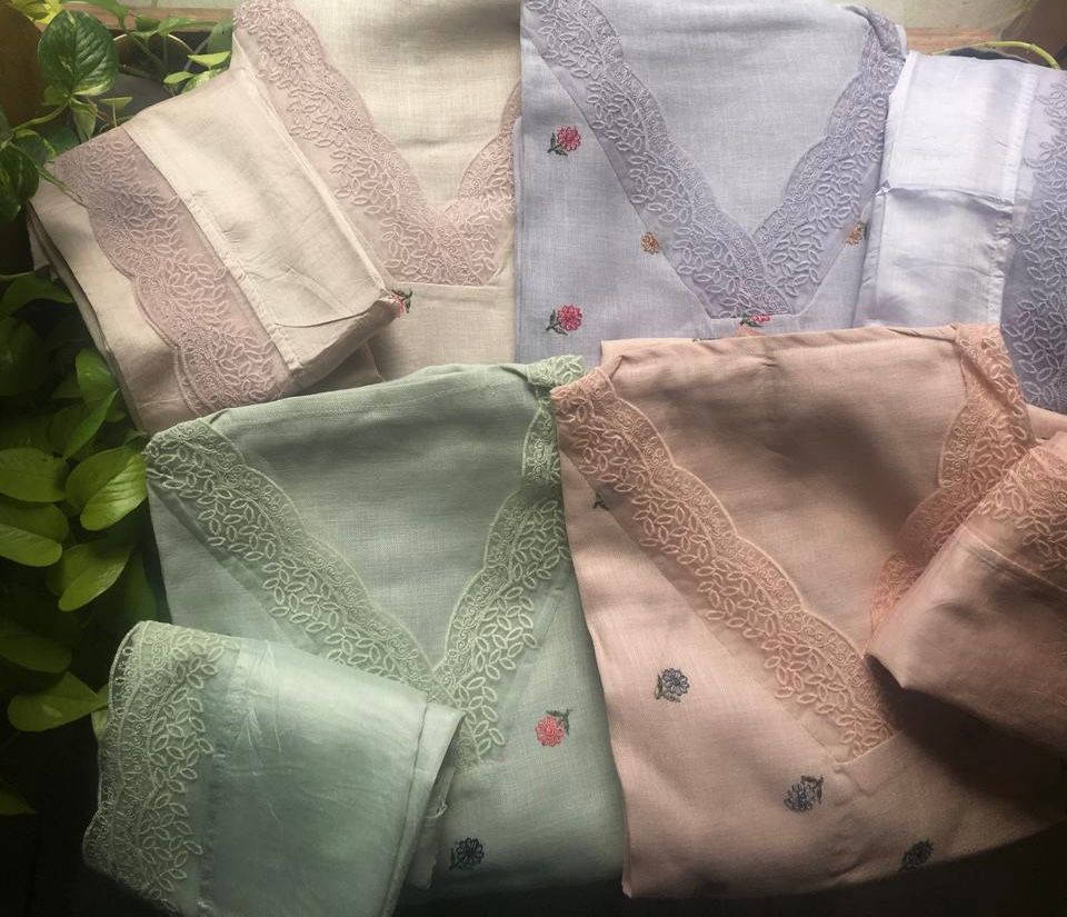 • Beautiful Linen cotton top with floral embroidery & French lace detailing at neck & sleeve borders , cotton botton & silk Duppatta with French lace borders !!! Limited pieces available!!!Hurry & order these before we run out of them! Perfect choice for gifting your dear ones this festive season ₹1,499.00