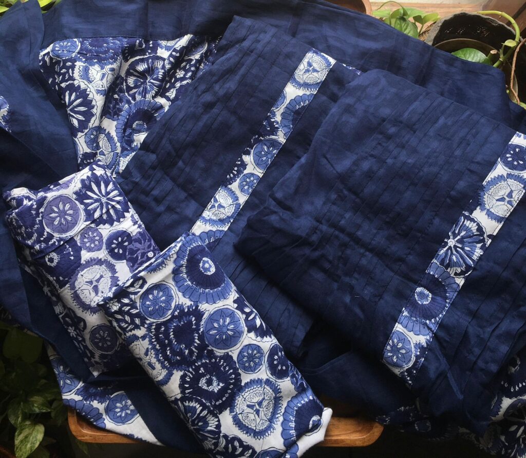 Are you looking out for Beautiful & Unique Handworked Suits to add to your wardrobe ? These Linen cotton suits are the perfect choice! Linen cotton top with hand embroidery , cotton silk bottom & linen cotton floral printed Duppatta