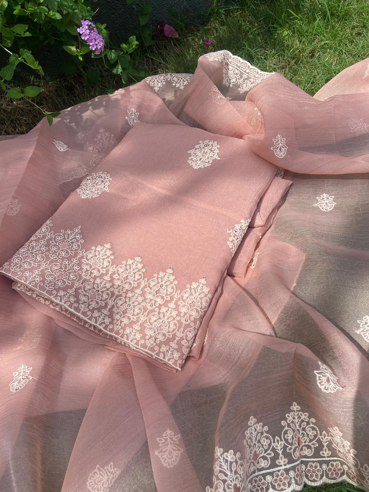 Are you looking out for a Beautiful Cutwork Suits to add to your wardrobe ? These suits with gorgeous Cutwork & floral embroidery are the perfect choice! Khapa tussar silk top & Duppatta with intricate floral embroidery & Cutwork & Khapa tussar silk bottom