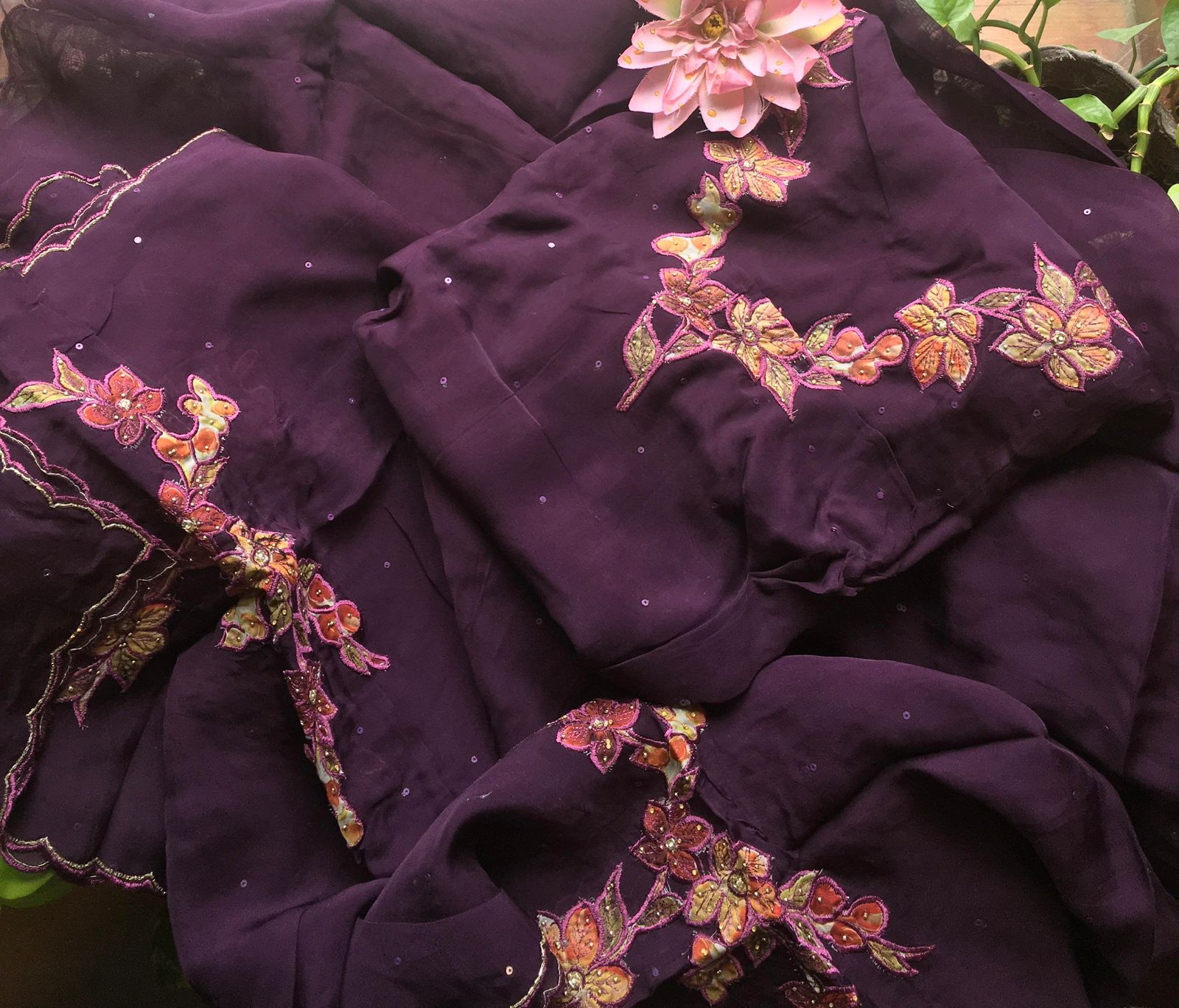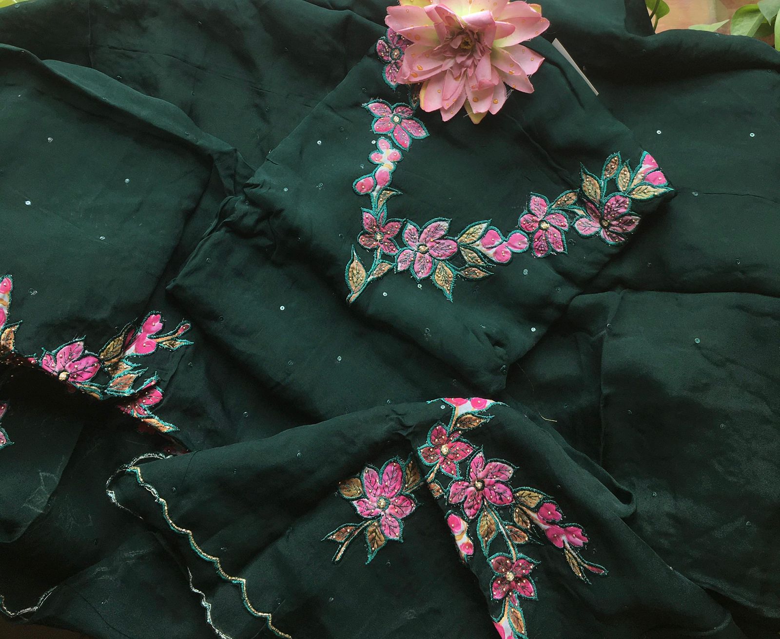 A stunningly gorgeous collection in silk organza top & Duppatta with beautiful appliqué work & santoon bottom