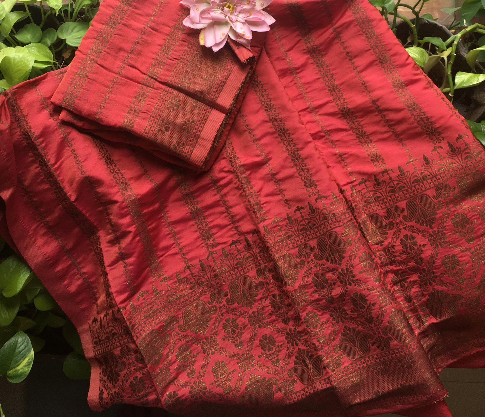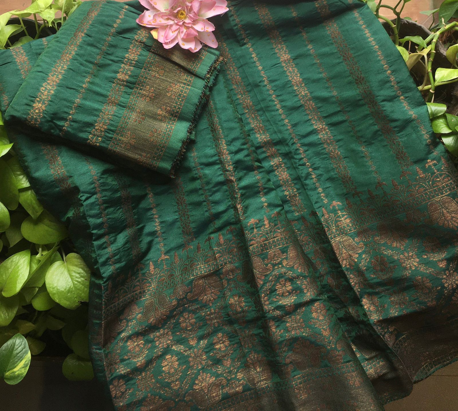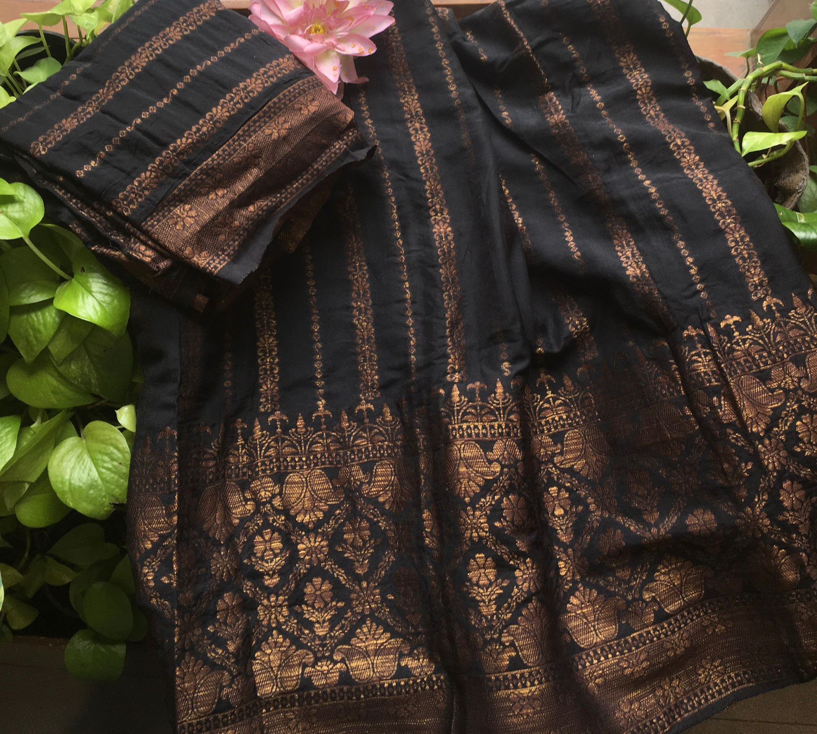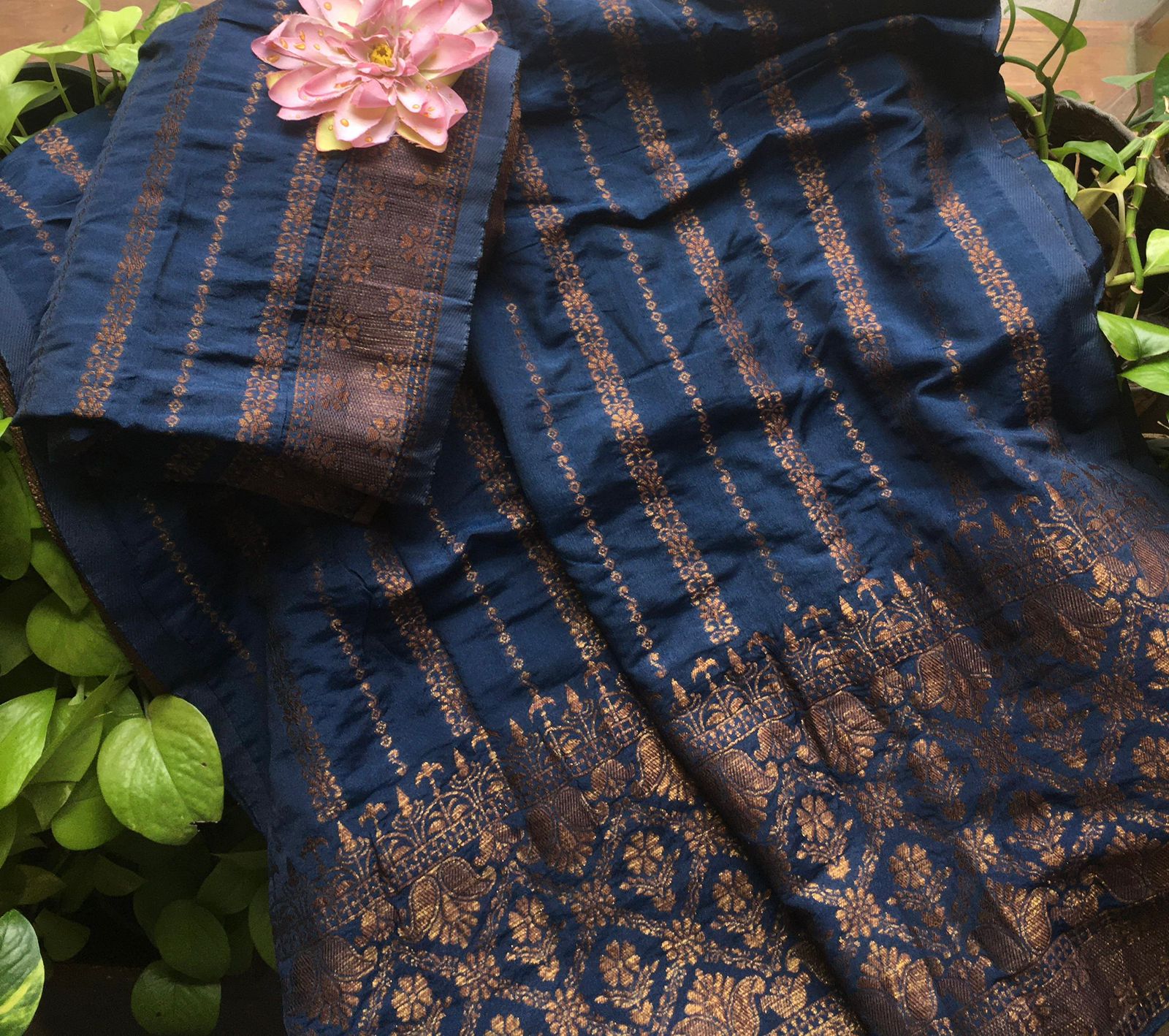 A Beautiful collection in pure Khadi Georgette top & Duppatta with stunning copper benarasi weave, cotton silk bottom