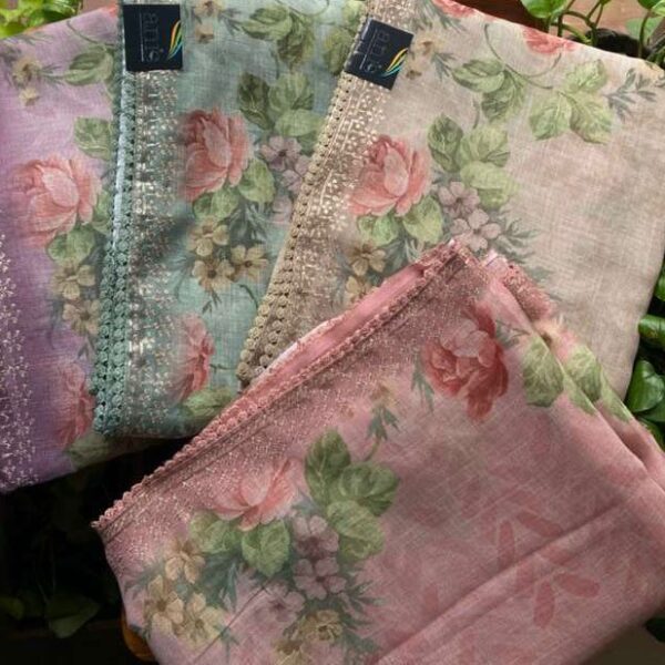 Beautiful Soft Kota Cotton Sarees in two striking patterns of French lace borders and apllique floral embroidery. With blouse ☘️Main feature DYEABLE making it ideal for reuse