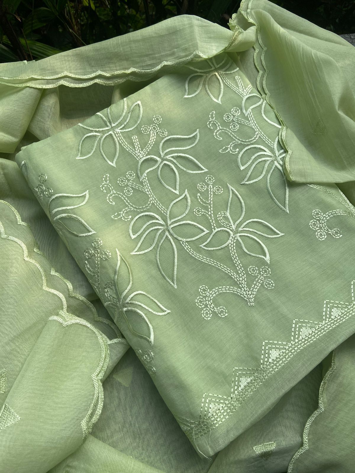 Are you looking out for a Beautiful Designer Silk Suits to add to your wardrobe ? These Silk Appliqué suits are the perfect choice! Pure Mal Chandheri top with exquisite appliqué work , santoon bottom & pure Mal Chandheri Duppatta with exquisite embroidery