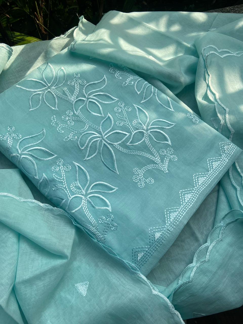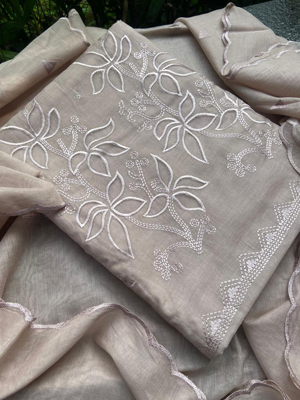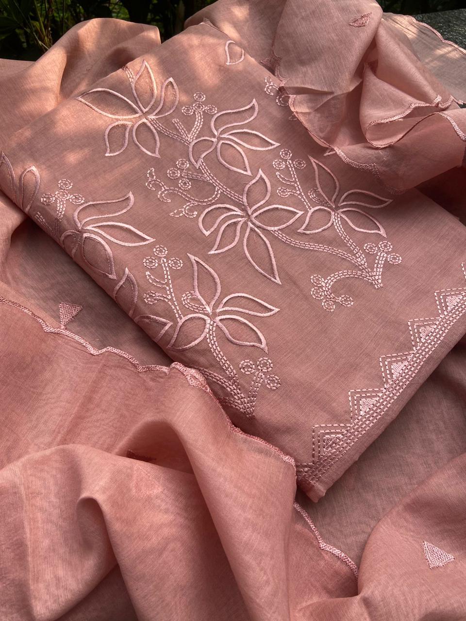 Are you looking out for BeautifulMuslin Suits to add to your wardrobe ? These designed suits are the perfect choice! Pure Muslin top with embroidery & pintucks patterned on top, cotton bottom & Kota Doria Duppatta