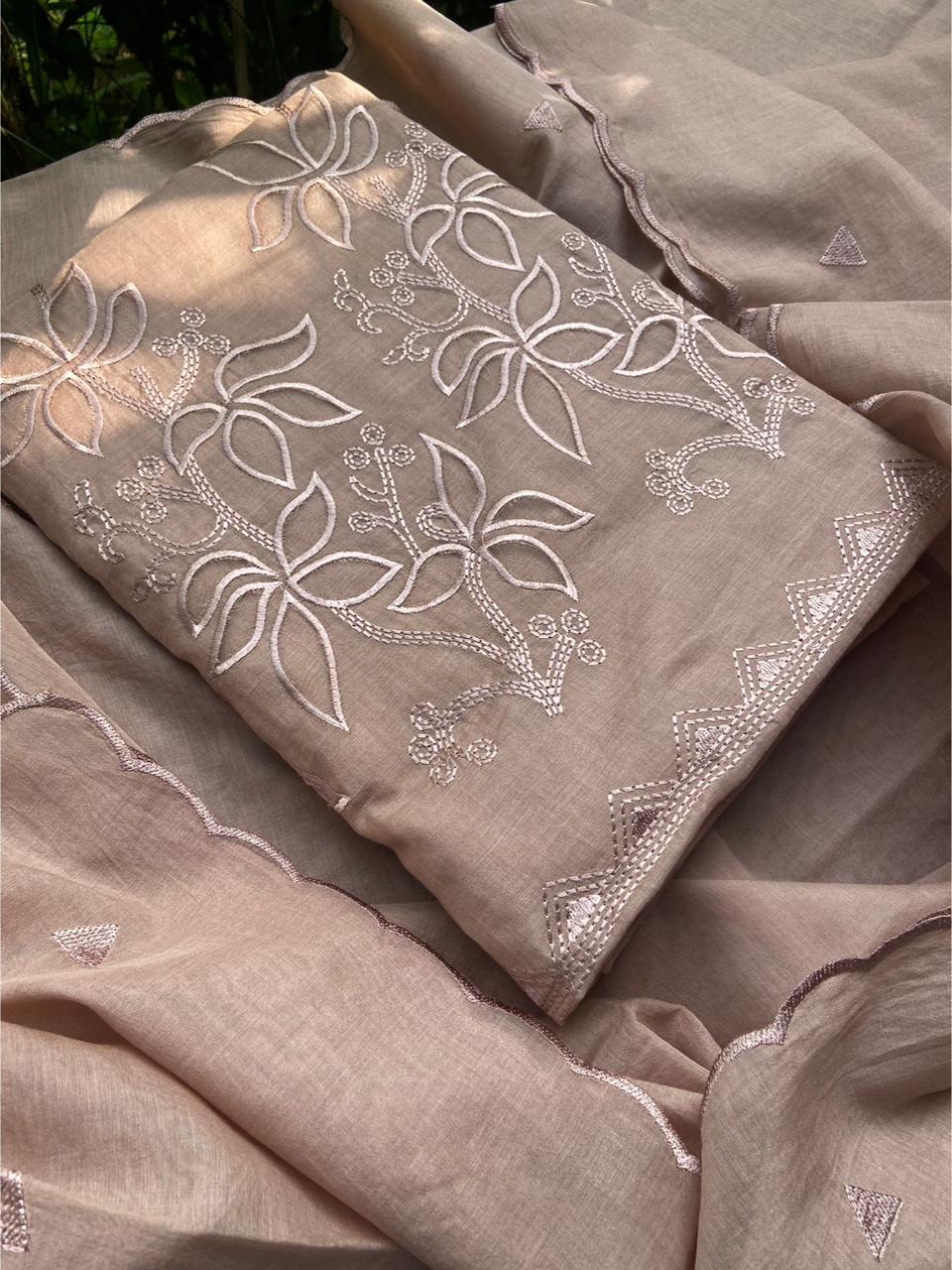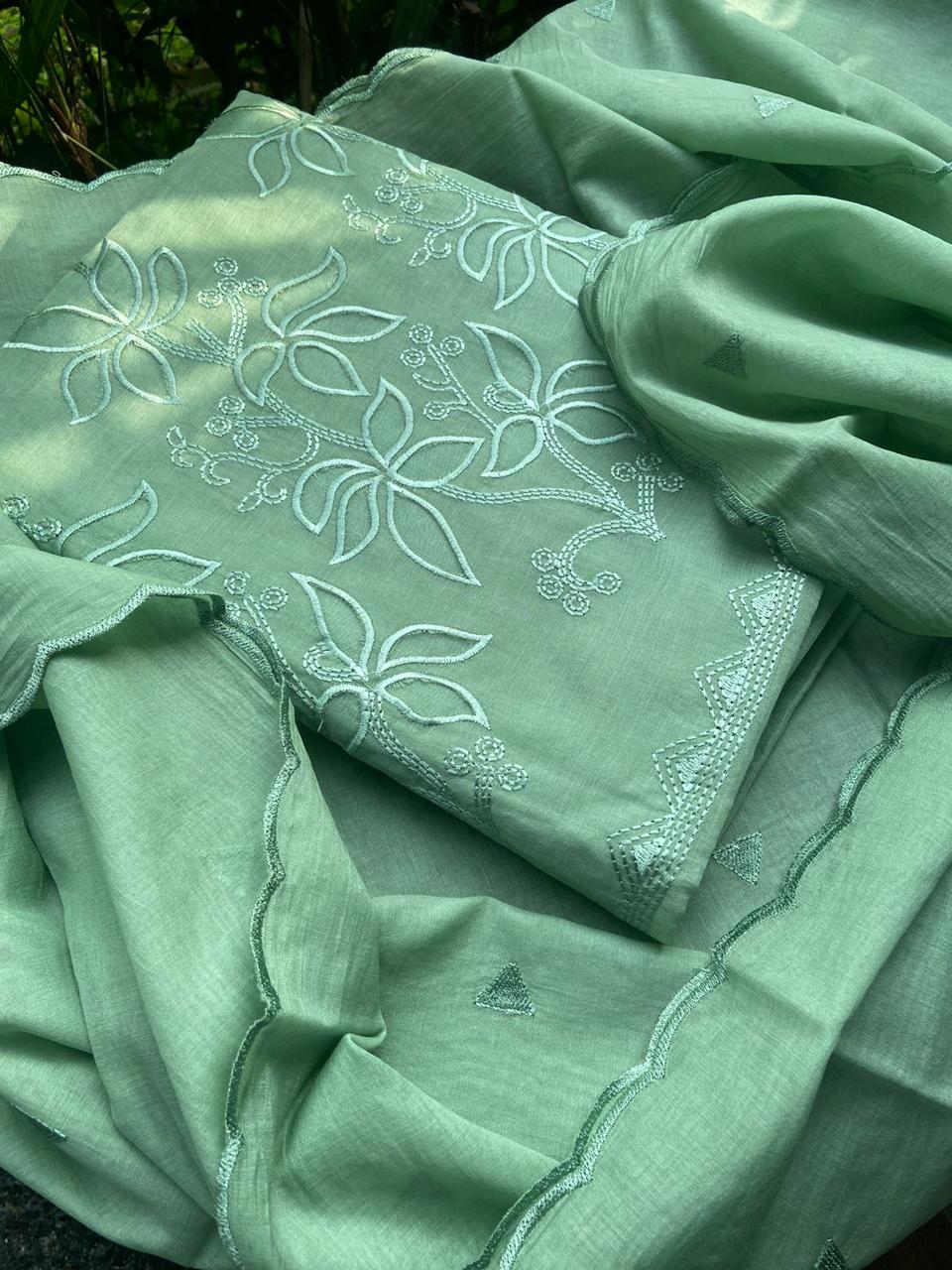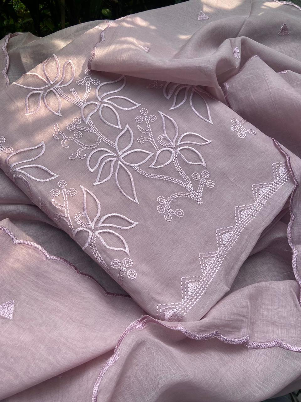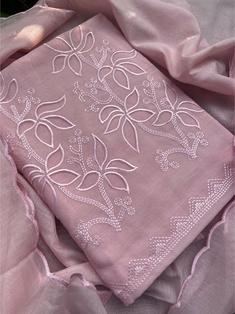 Are you looking out for BeautifulMuslin Suits to add to your wardrobe ? These designed suits are the perfect choice! Pure Muslin top with embroidery & pintucks patterned on top, cotton bottom & Kota Doria Duppatta