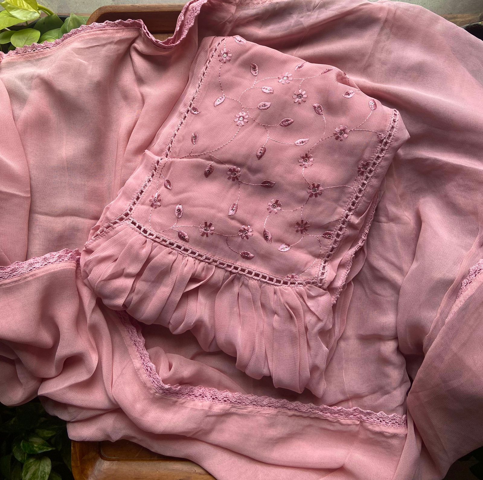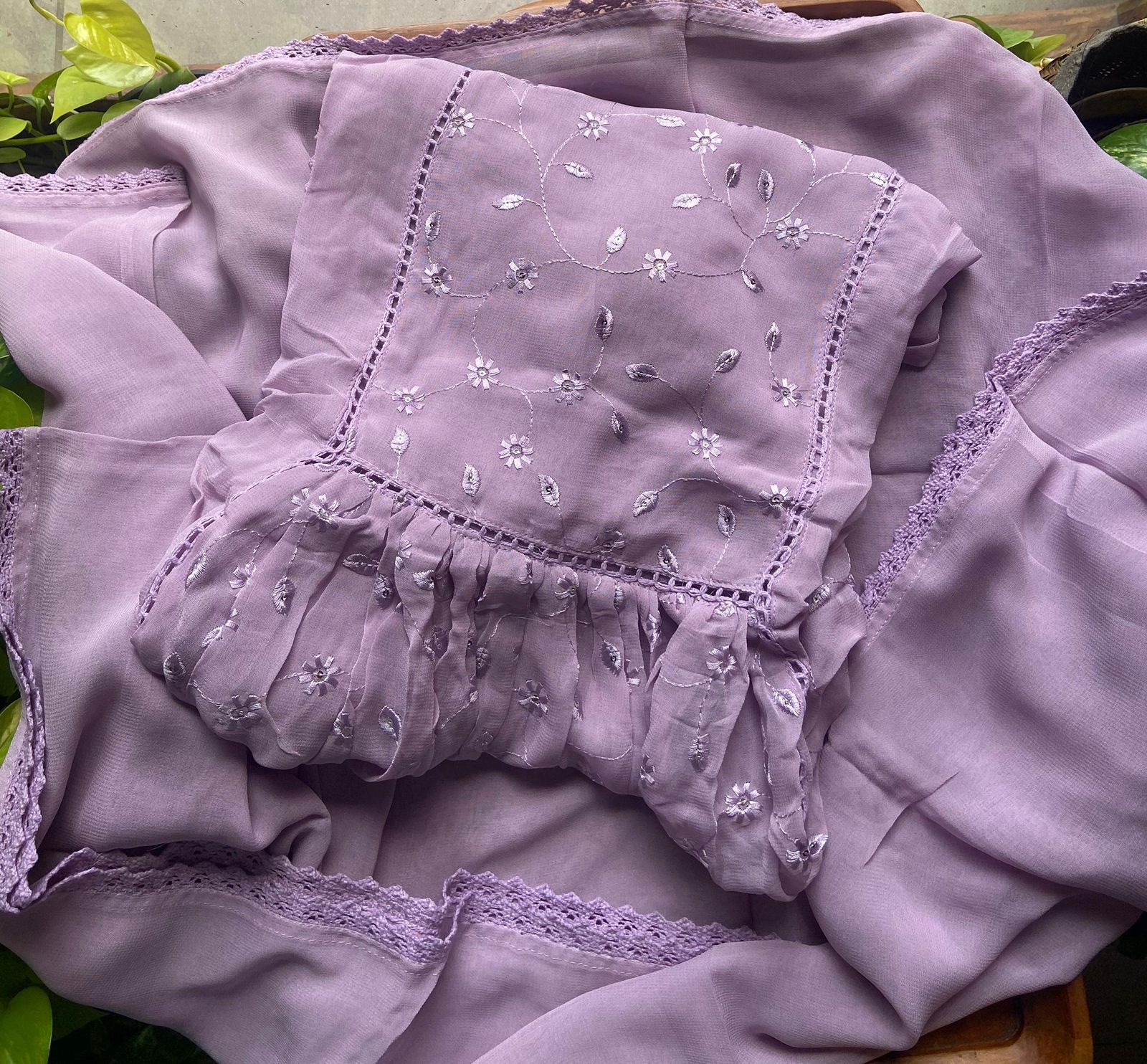 Are you looking out for Beautiful Designer Georgette suits to add to your wardrobe for this festive season ? These beautiful suits with all detailing done is the perfect choice! Pure viscose georgette top with beautiful embroidery detailing done & pure chiffon Duppatta with crochet lace detailing. No bottom can be customised additionally