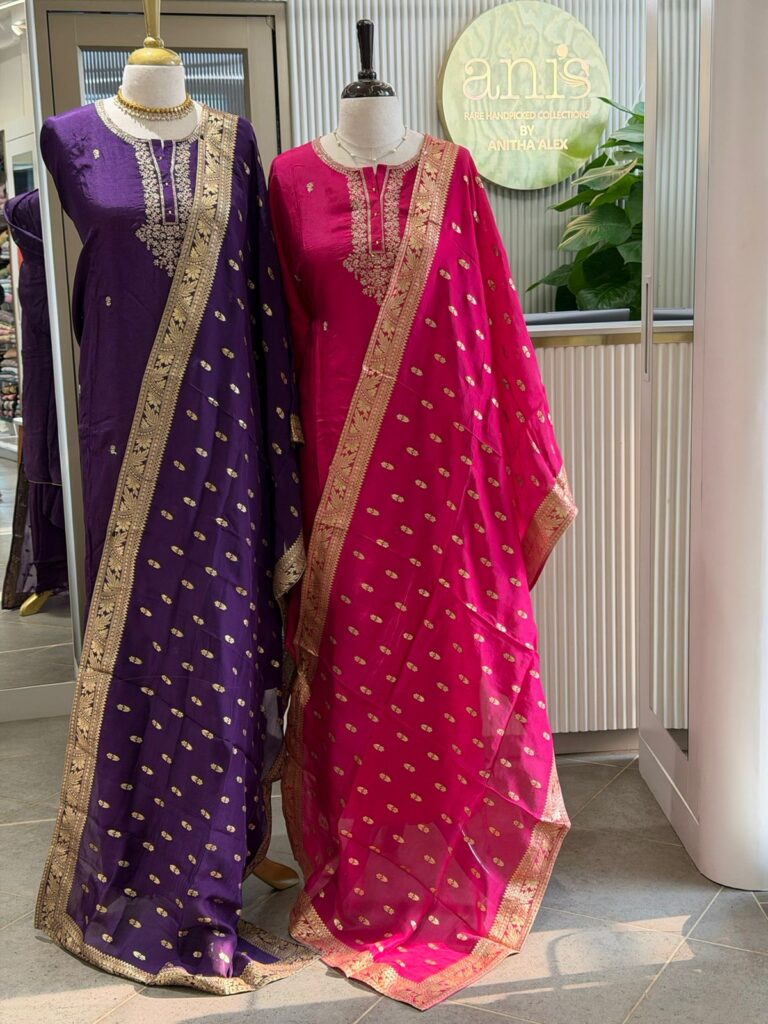 Be the first to review “Are you looking out for Beautiful Handworked Kotas to add to your wardrobe ? Pure Kota silk top & Duppatta with intricate hand embroidery detailing all along & cotton bottom” Cancel reply