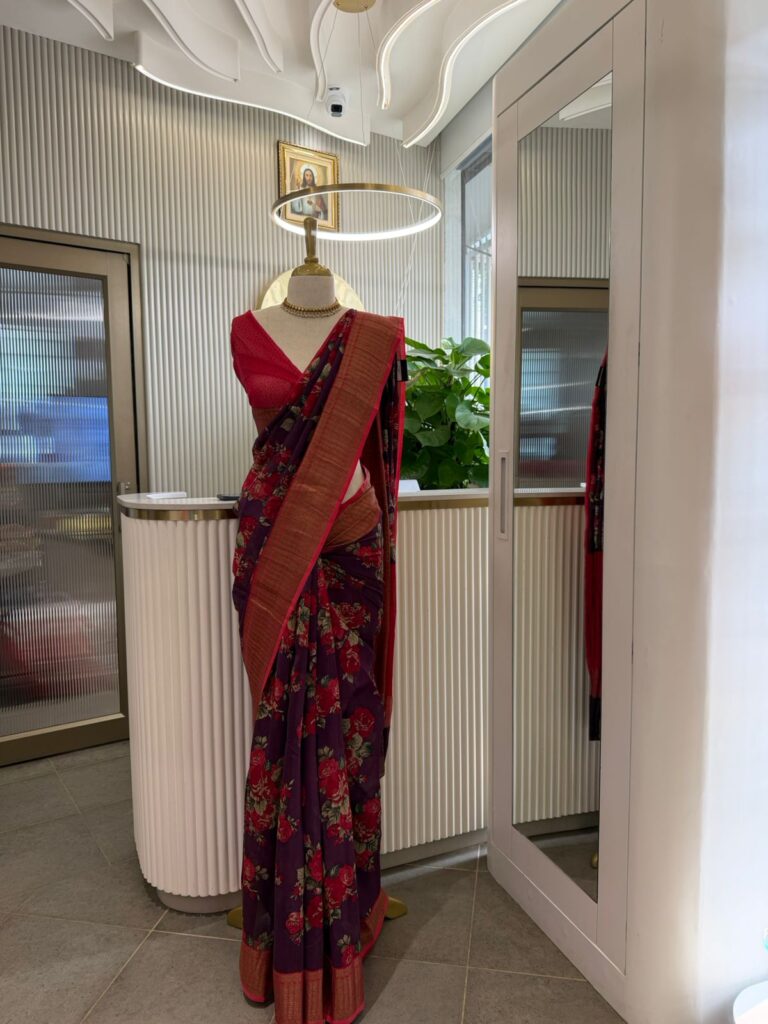 • Looking out for a stunning floral silk saree !!! This beautiful pure maheshwari silk saree with antique borders & stunning floral prints & with blouse is the perfect choice ₹3,990.00