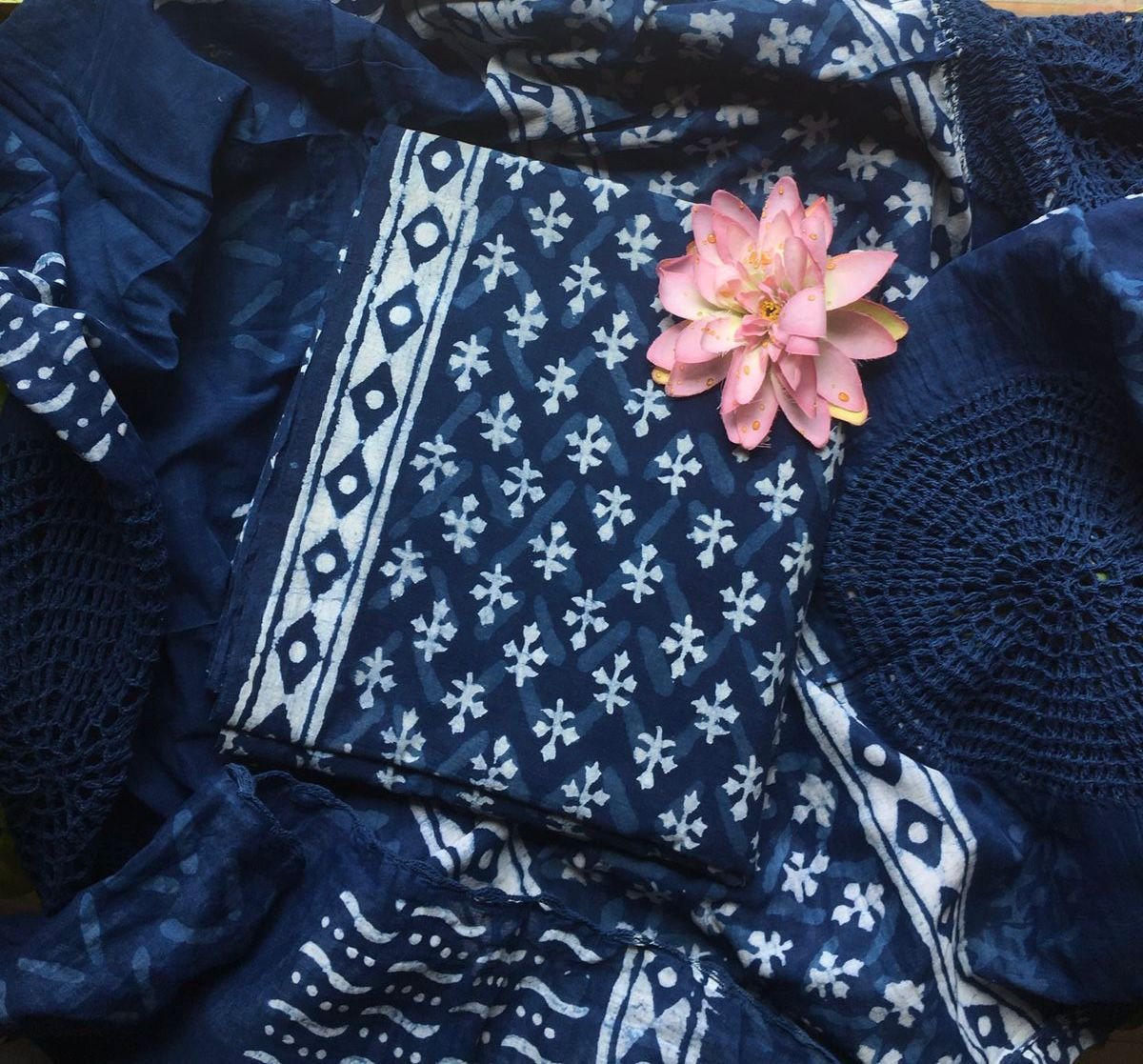 Ethereal & Classy, Off-white Floral Linen Set (Top & Dupatta) with beautiful floral prints and cotton bottom.