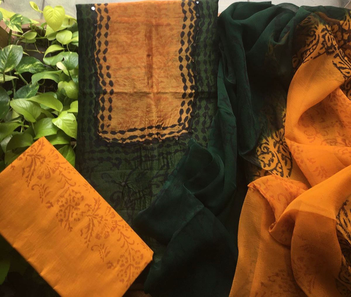 Are you looking out for a Beautiful Cotton Suits to add to your wardrobe ? These lovely cottons are the perfect choice! Pure cotton top with beautiful block prints & borders for styling , cotton bottom & chiffon Duppatta
