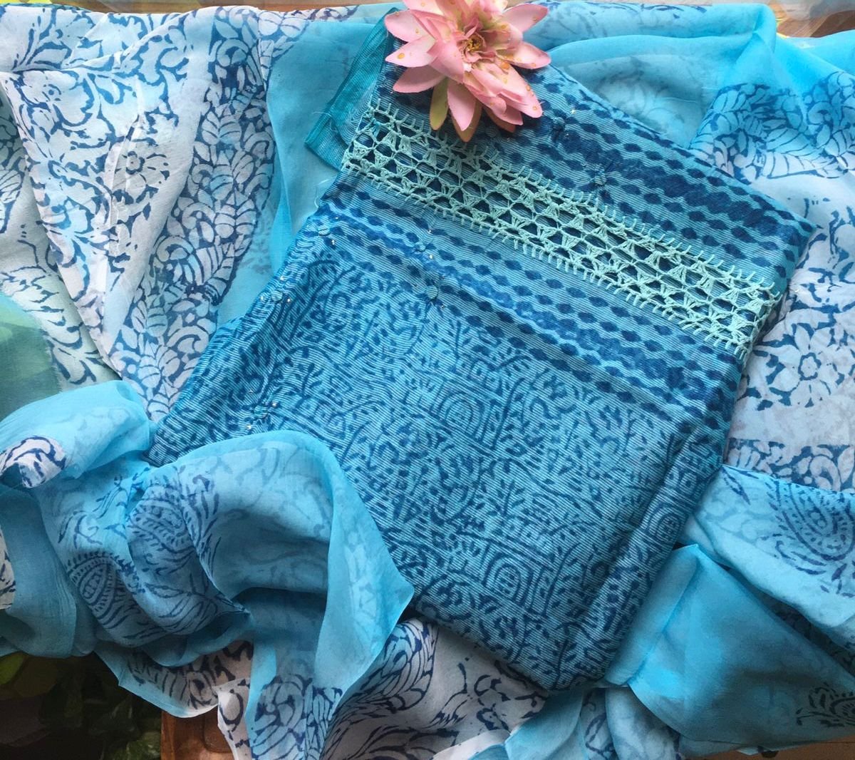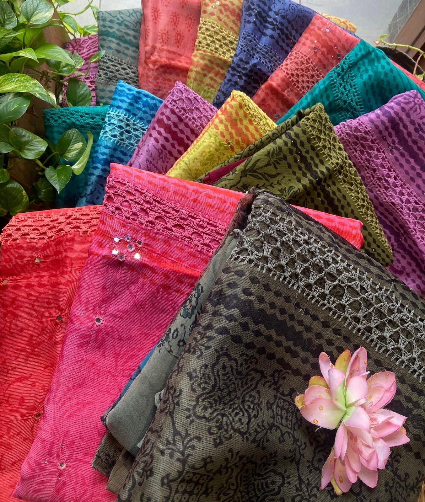 A stunning collection in Linen Cotton top and Duppatta with beautiful floral prints and floral embroidery and Cutwork on top and cotton bottom