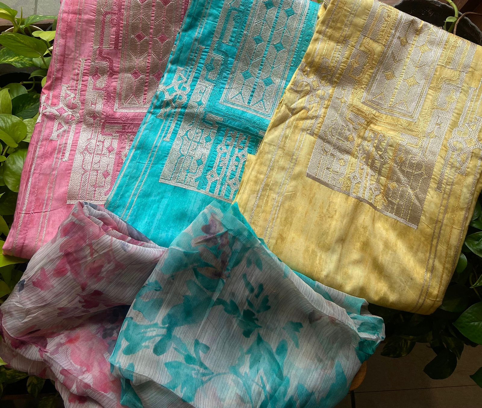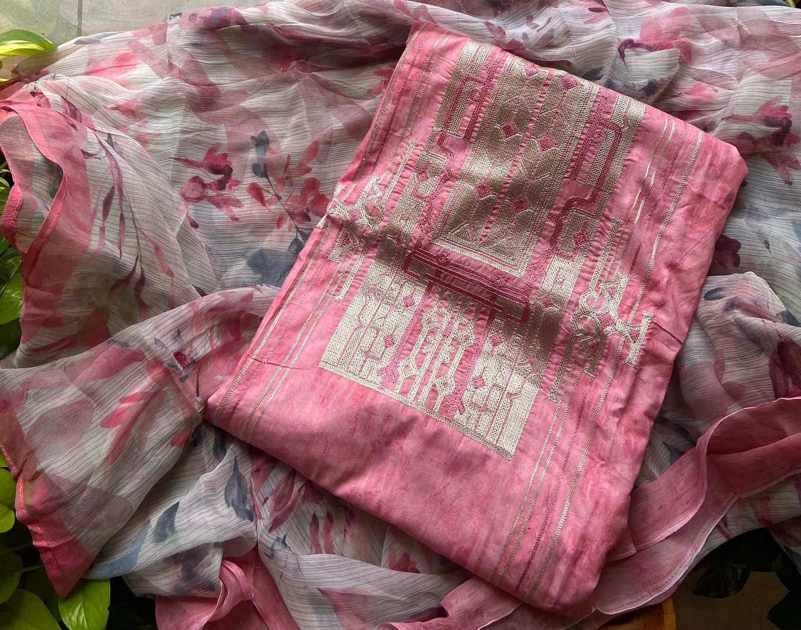 Are you looking out for beautiful Muslins to add to your summer wardrobe ? These beautiful floral muslins are the perfect choice. Pure muslin top with contemporary embroidery , cotton bottom & chiffon Duppatta