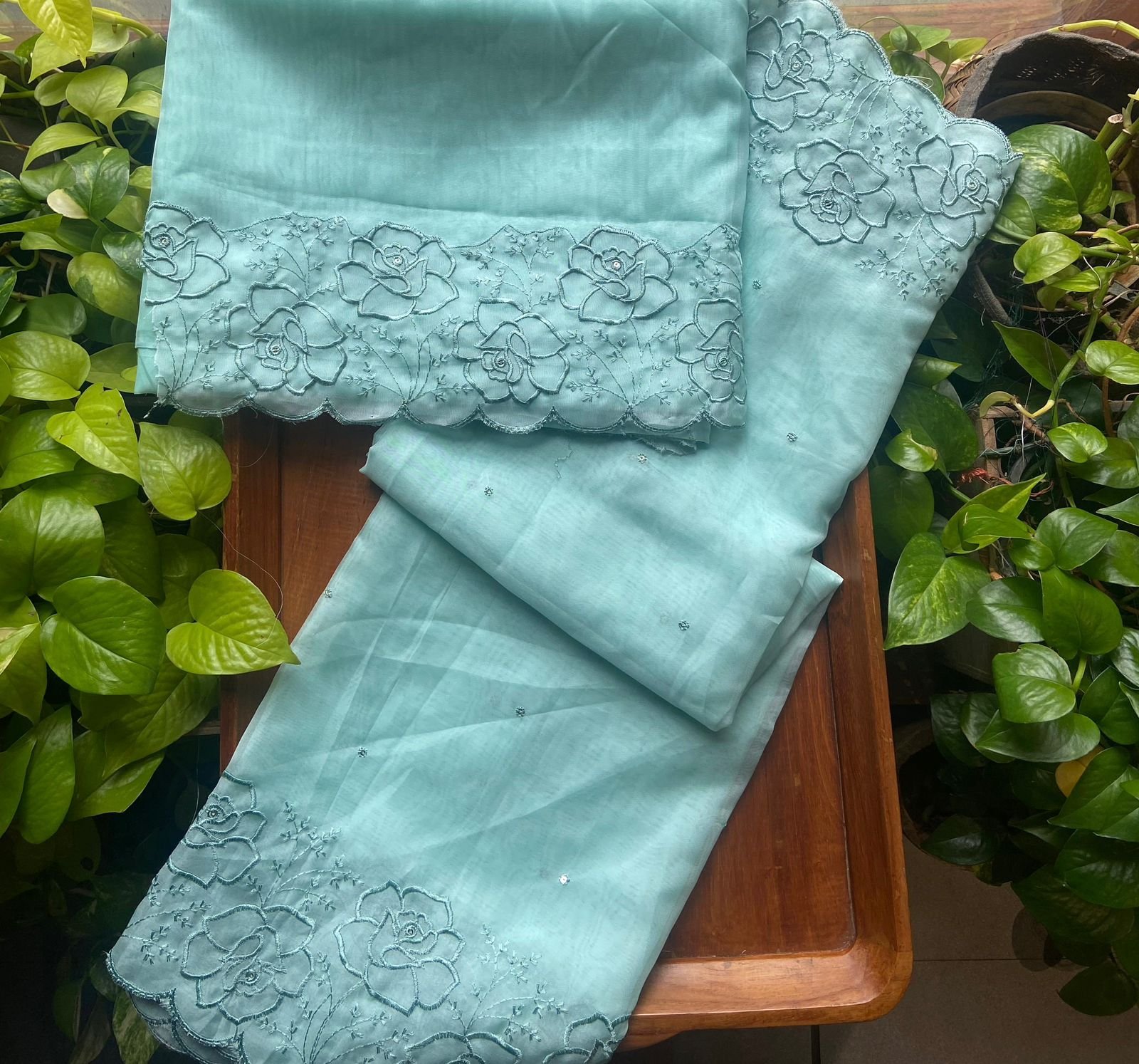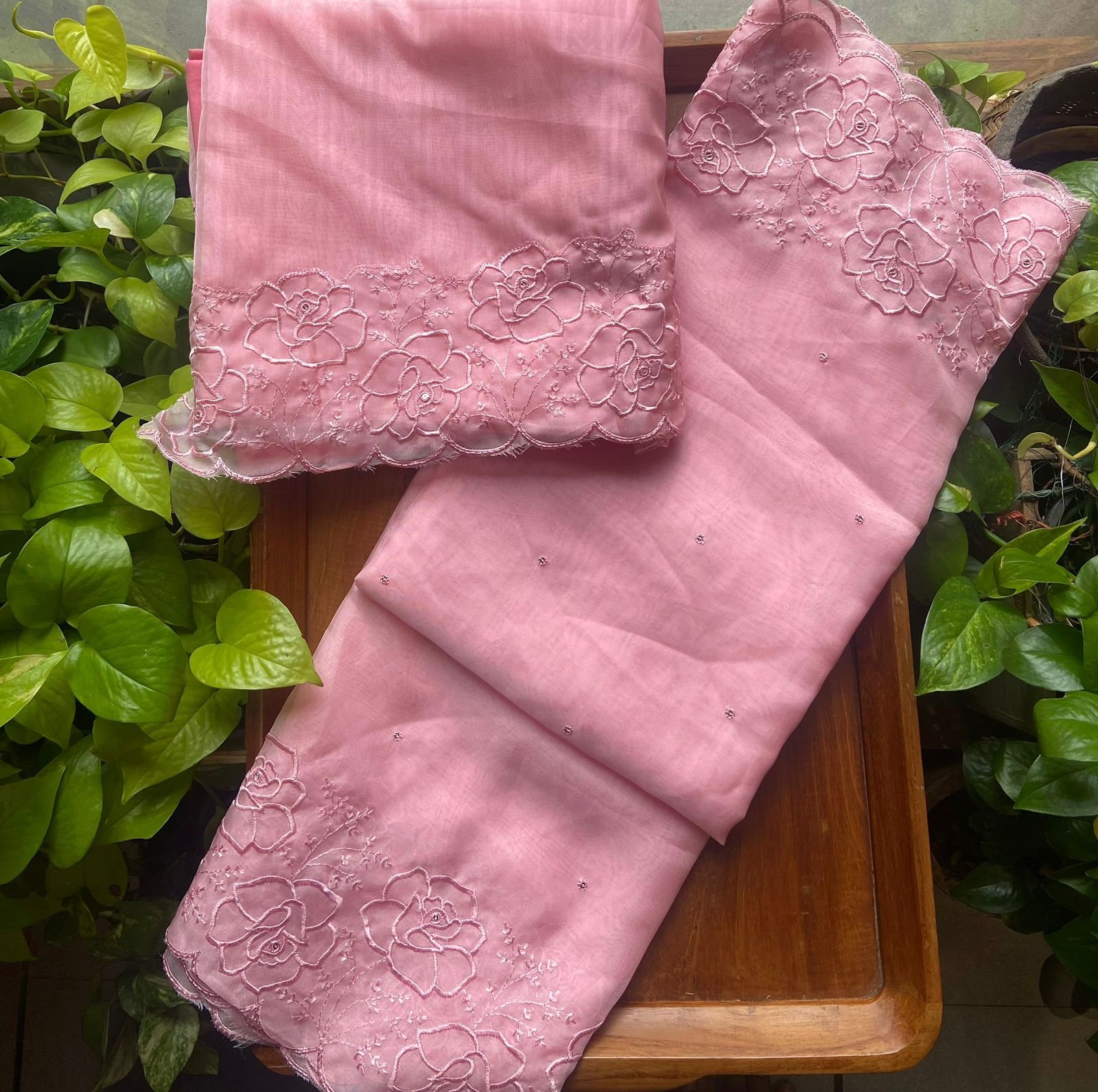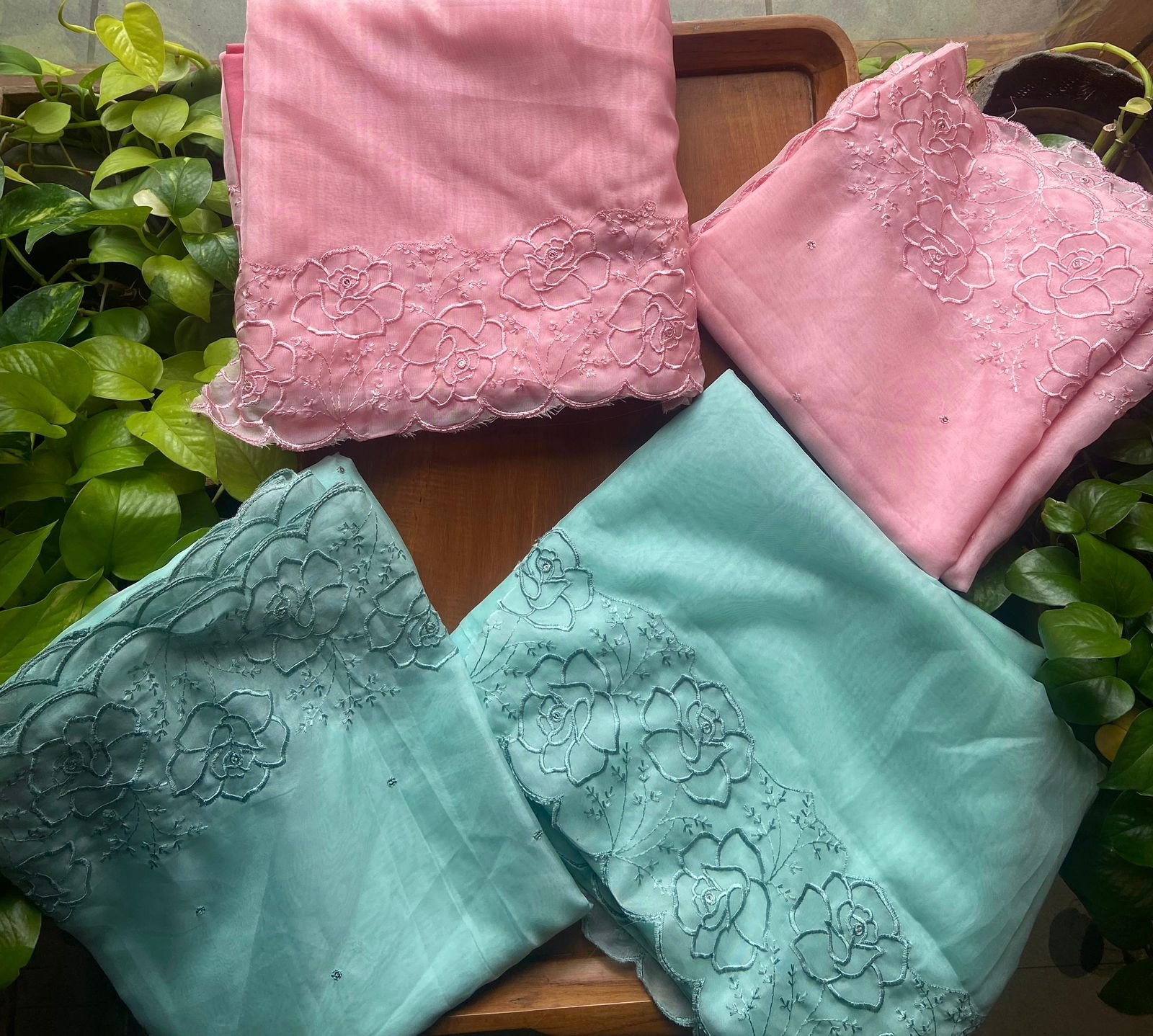 Are you looking out for Beautiful Organza suits to add to your wardrobe ? These beautiful English rosette embroidered suits are the perfect choice! Organza too & Duppatta with beautiful English rosette embroidery & cotton bottom