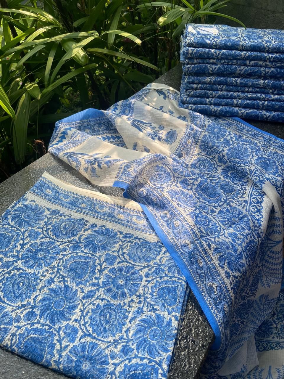 Are you looking out for Beautiful Summer Friendly Pure Kota Doria suits to add to your wardrobe ? These Offwhite Indigos are the perfect choice! Soft and summer friendly with a vibrant splash of colors these will brighten up your wardrobe any day! Pure Kota Doria too & Duppatta with hand block prints & borders for styling & cotton bottom