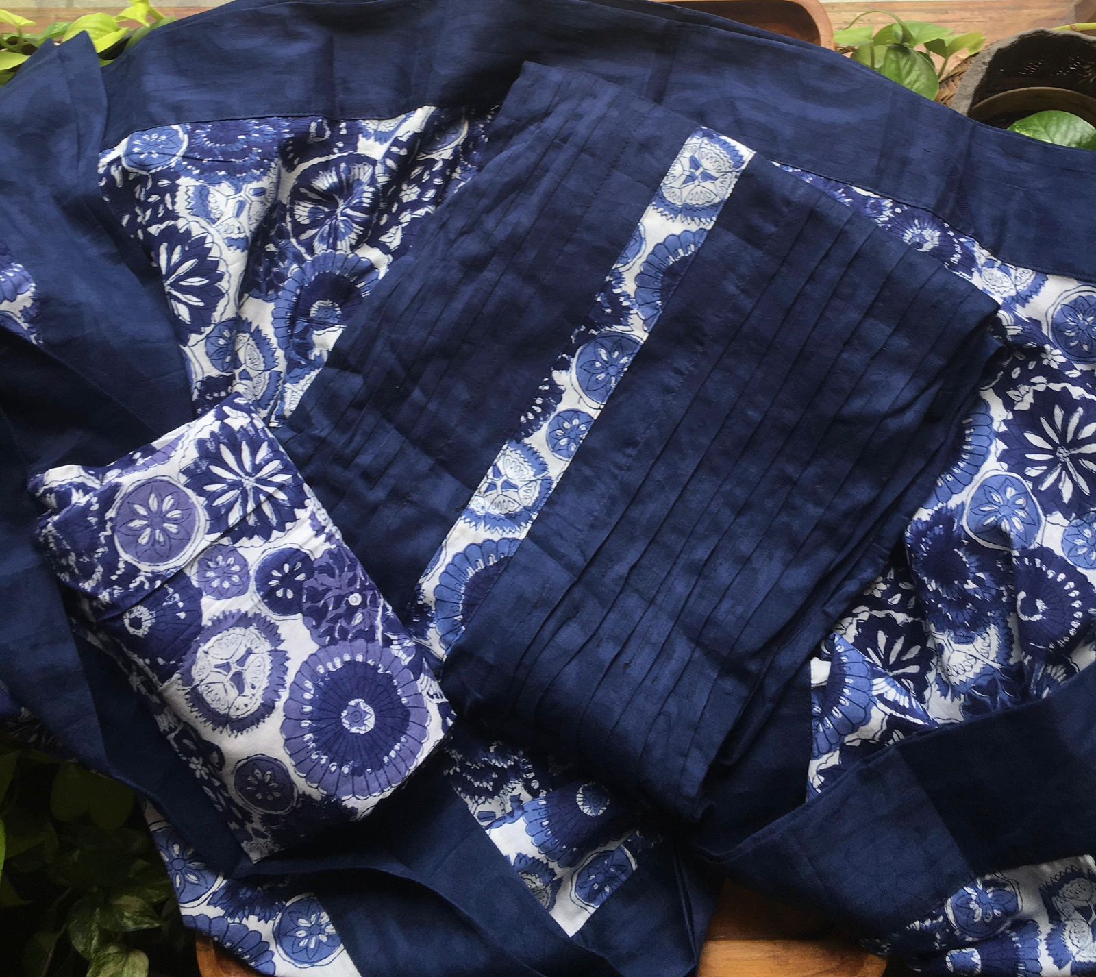 Are you looking out for Beautiful & Unique Cotton Suits to add to your wardrobe ? These Indigo cotton suit top with pintucks detailing is the perfect choice! Pure cotton top with pintuck detailing , cotton printed bottom & printed Duppatta