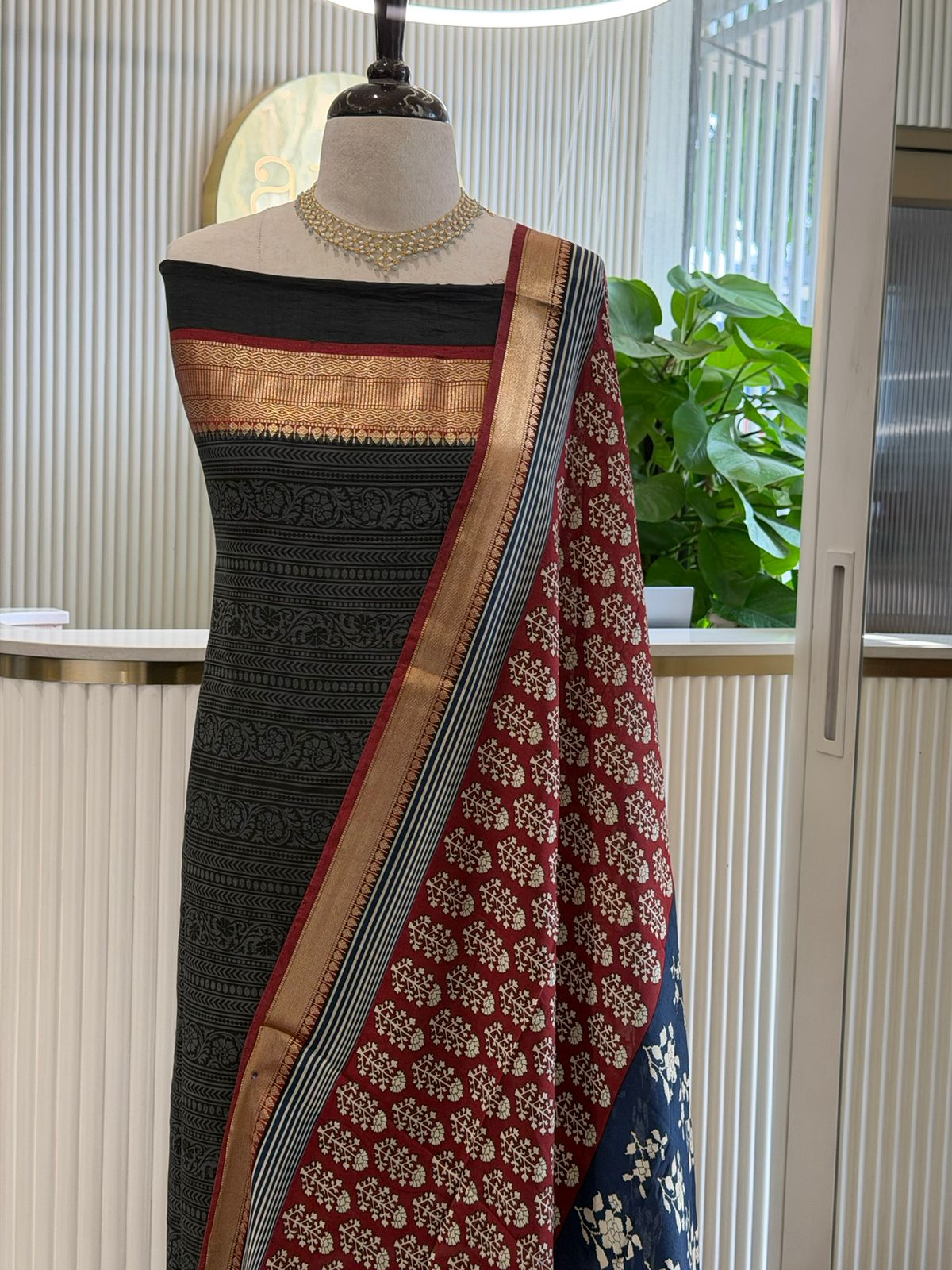 HomeSalwar Set Are you looking out for Beautiful & Unique Designer muslins to add to your wardrobe ? These Hand block printed muslins are the perfect choice! Pure muslin top with a stunning border for styling , santoon bottom & muslin block printed Duppatta