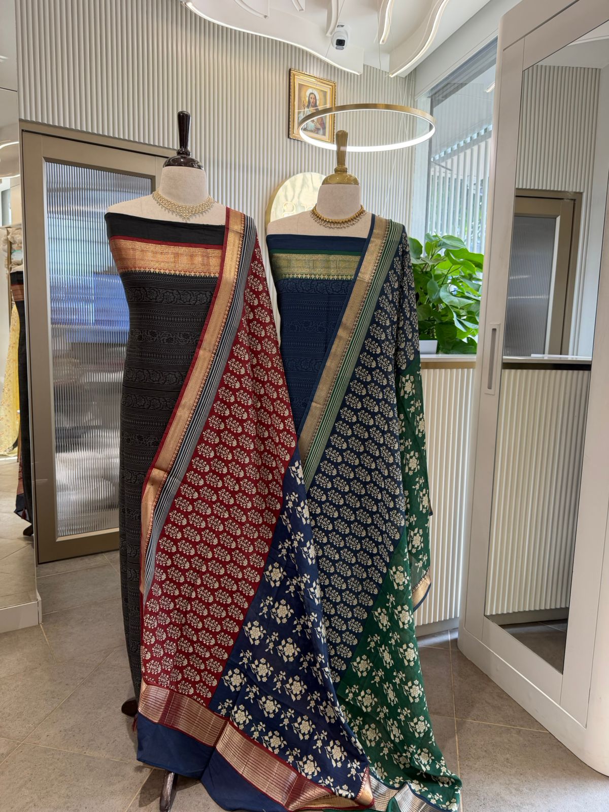 Are you looking out for Beautiful & Unique Designer muslins to add to your wardrobe ? These Hand block printed muslins are the perfect choice! Pure muslin top with a stunning border for styling , santoon bottom & muslin block printed Duppatta