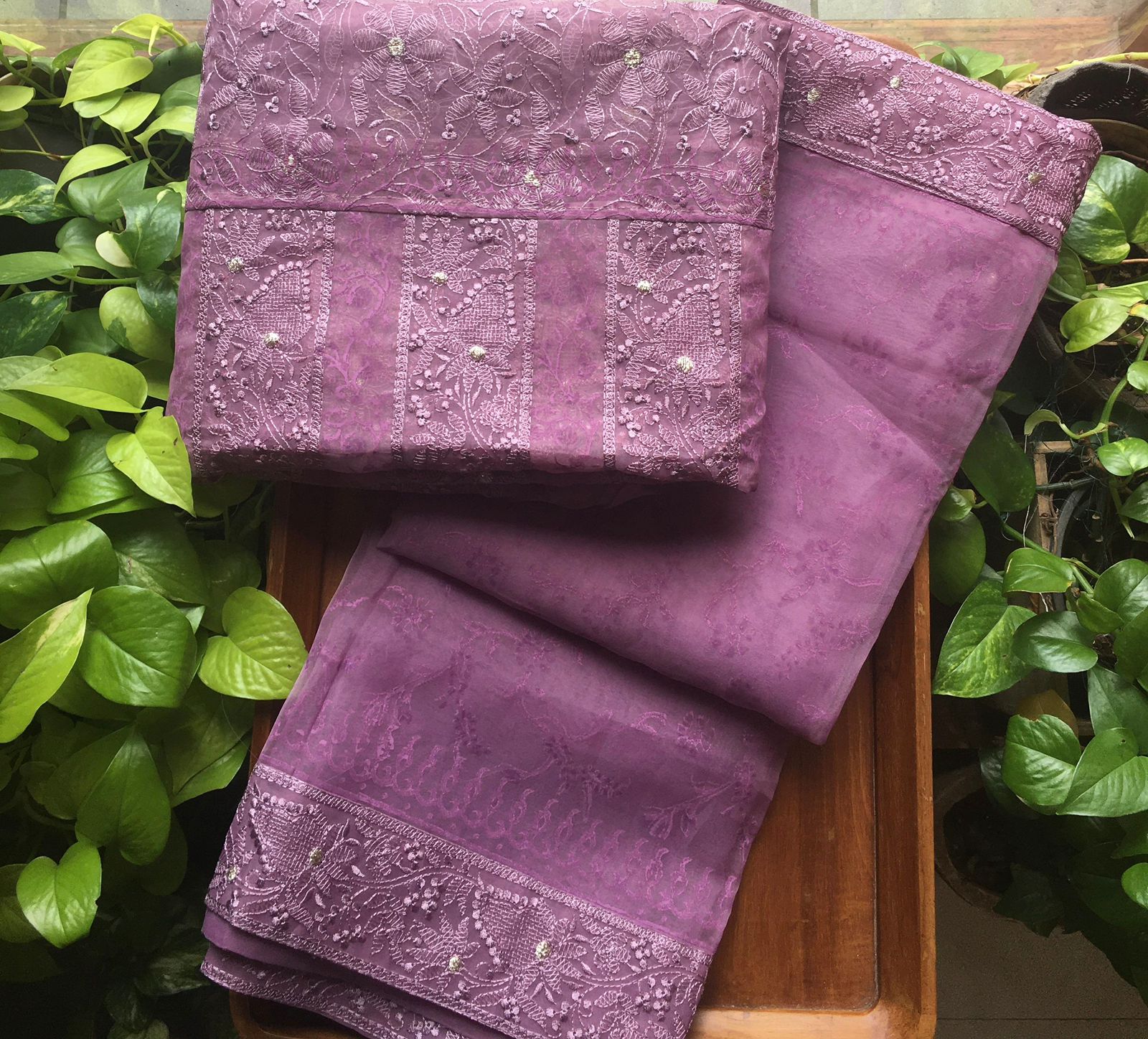 Are you looking out for Beautiful & Unique Organza Suits to add to your wardrobe ? These Organza Chikankari Suits are the perfect choice!Organza top with Chikankari embroidery detailing , cotton bottom & organza Duppatta with Tepchi Chikankari borders