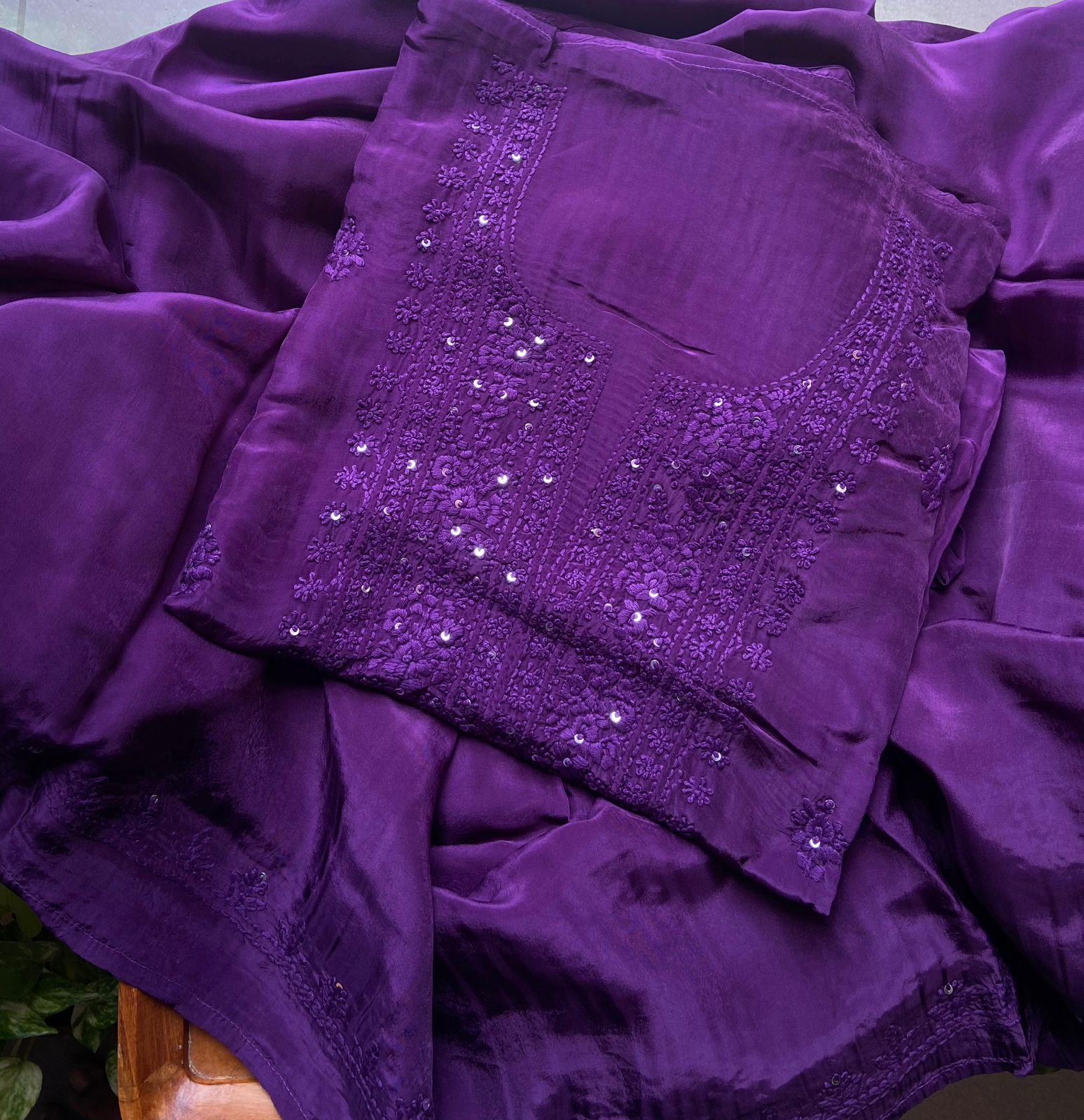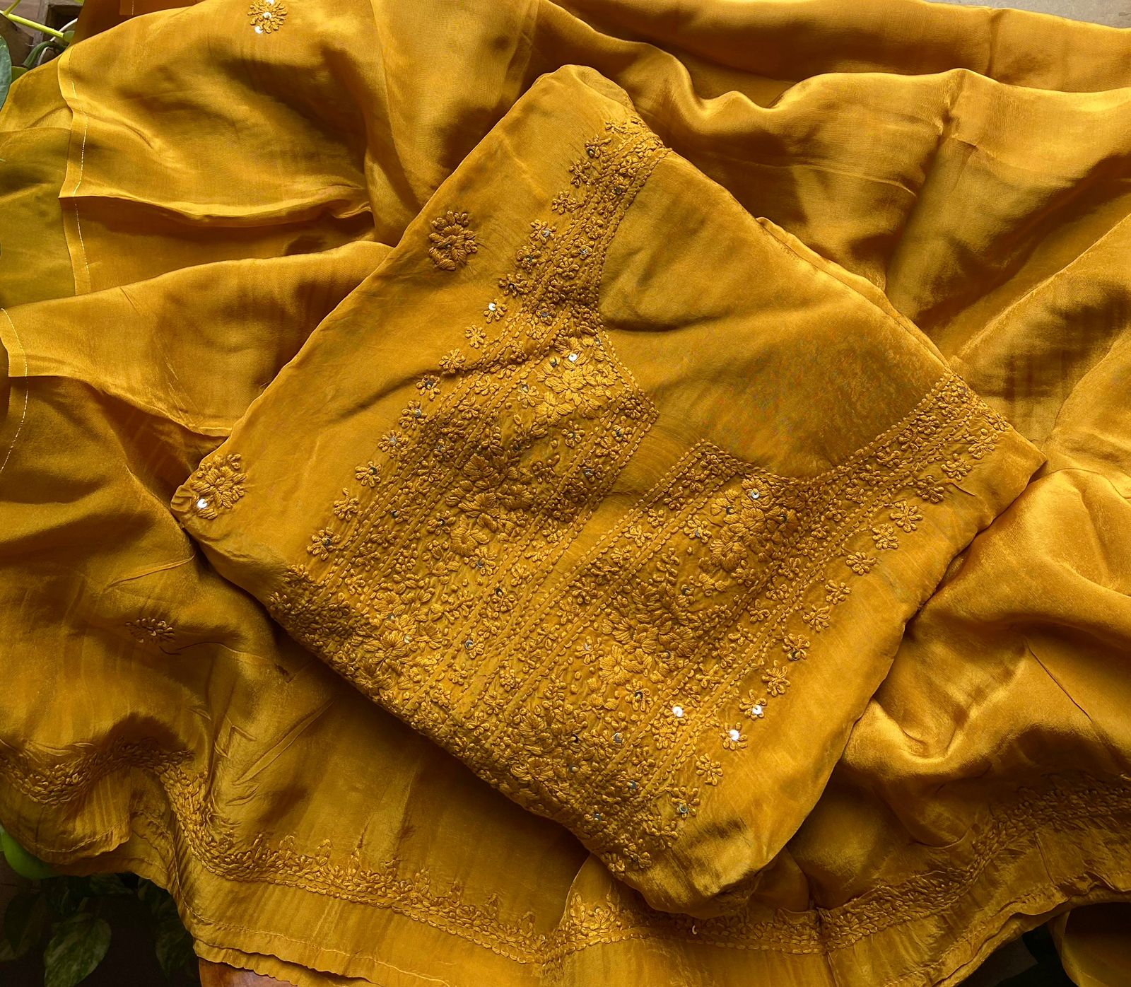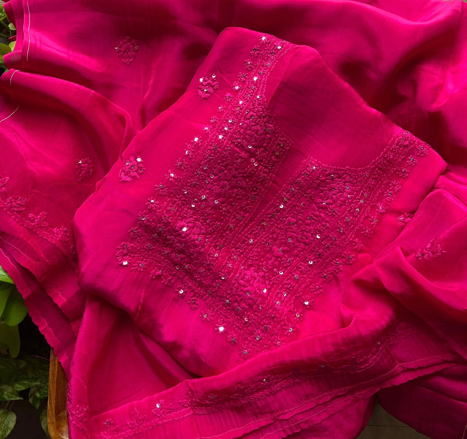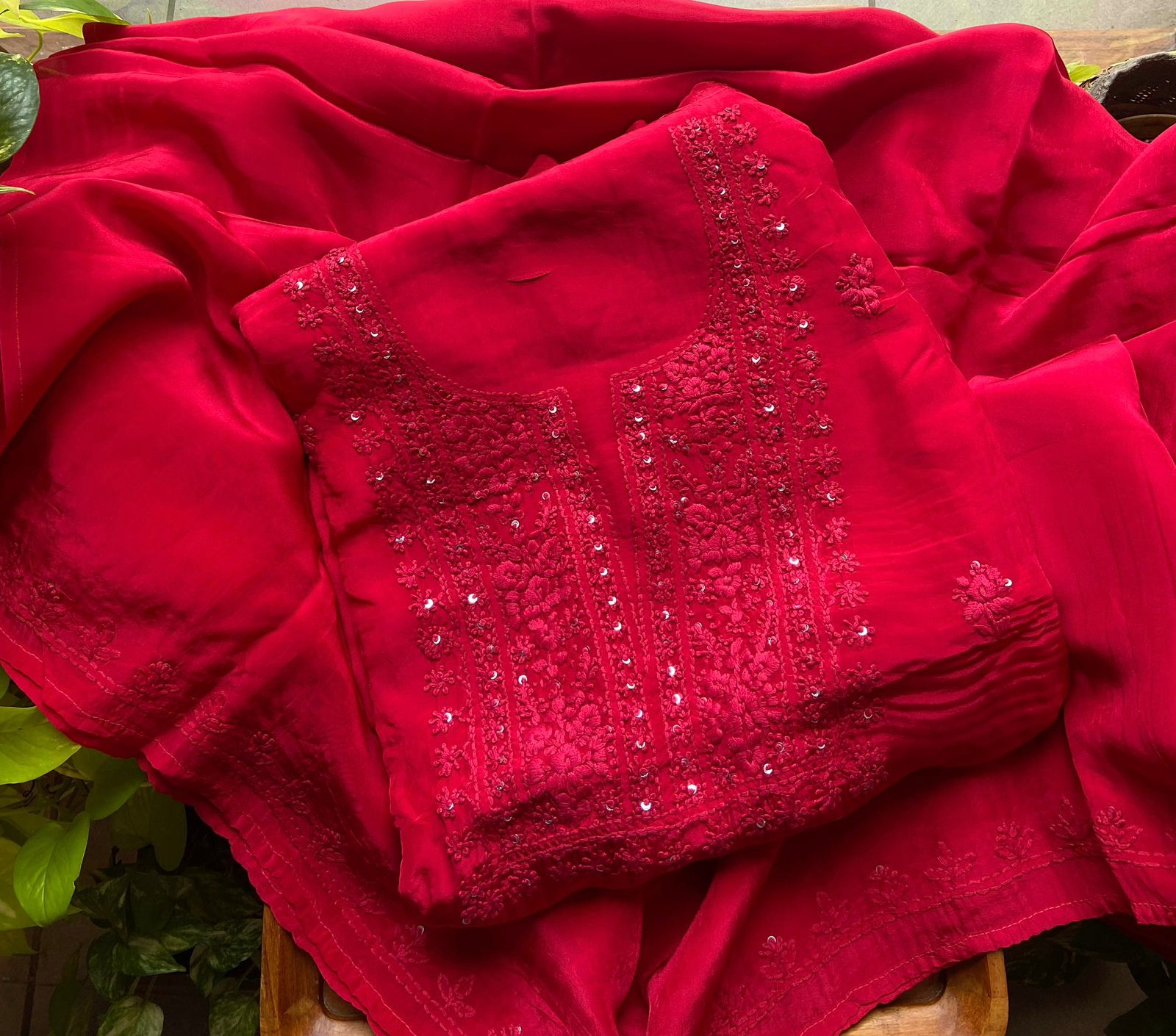 Are you looking out for Beautiful & Vibrant hues in Chikankaris to add to your wardrobe ? Our pure crepe silk Chikankari Suits in stunning shades are the perfect choice! Pure crepe silk top & Duppatta with exquisite Lucknow Chikankari embroidery & santoon bottom