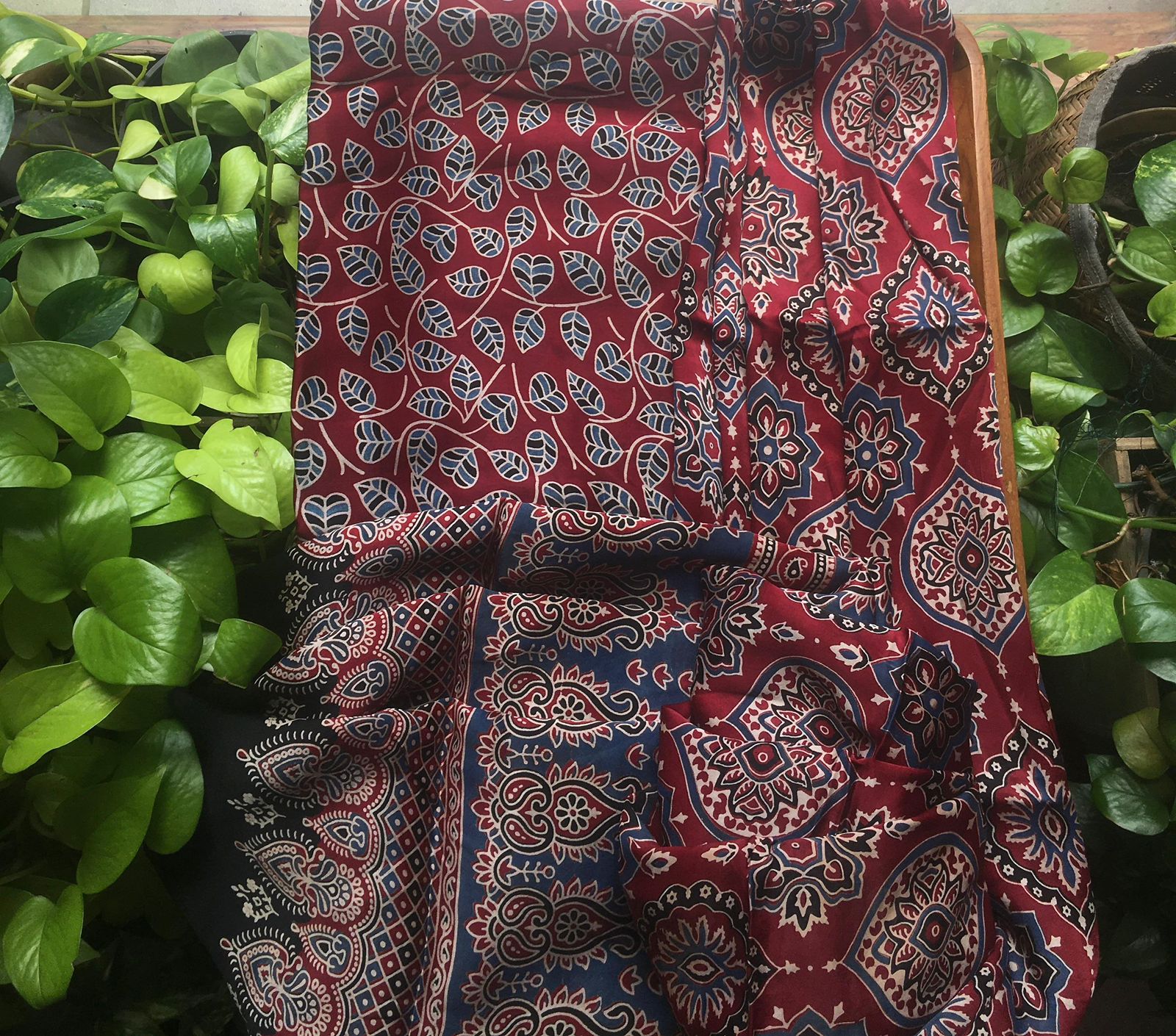 Are you looking out for pure modal Ajrakhs  to add to your wardrobe ? These pure modals with stunning Ajrakh prints are the perfect choice. Pure modal top & Duppatta with Ajrakh block prints. The Duppatta can even be styled as stylish kaftans. No bottom. Can be customised additionally