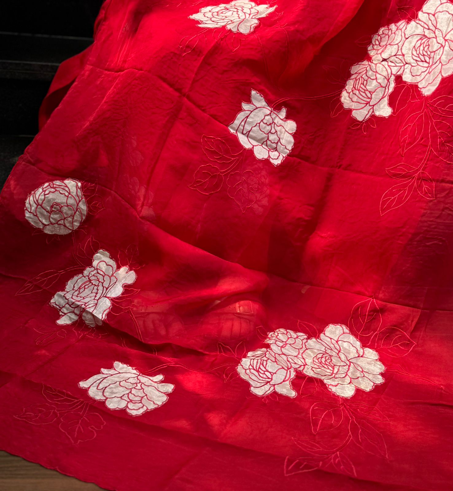 A beautiful collection of pure silk organza top & Duppatta with exquisite tissue appliqués ,santoon bottom.