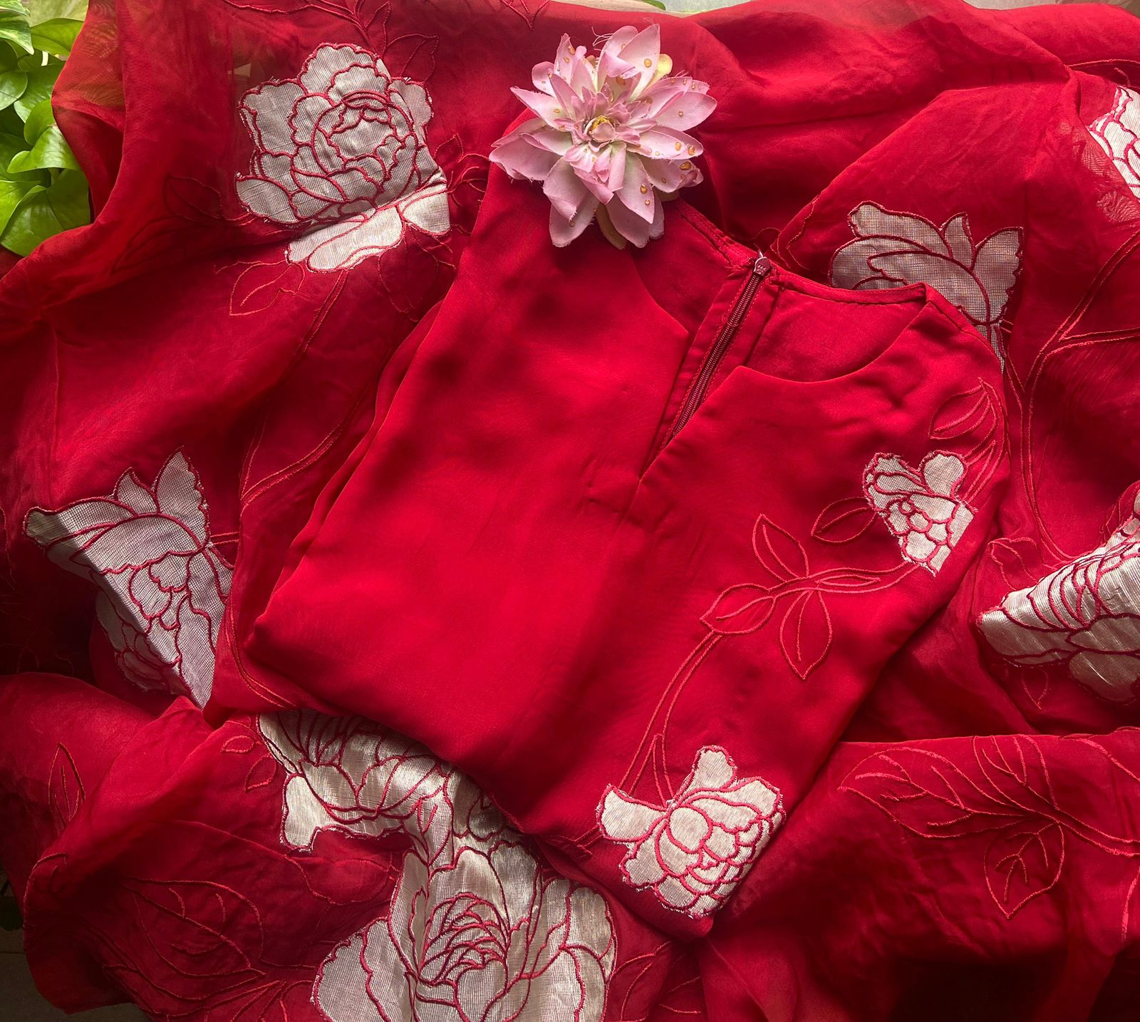 A beautiful collection of pure silk organza top & Duppatta with exquisite tissue appliqués ,santoon bottom. ₹4,990.00