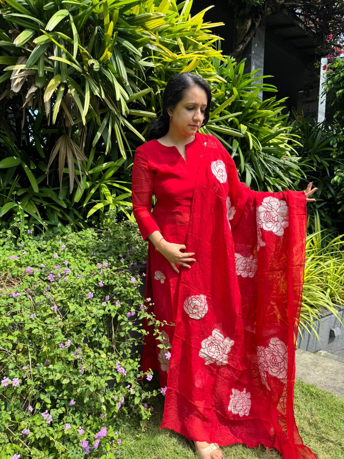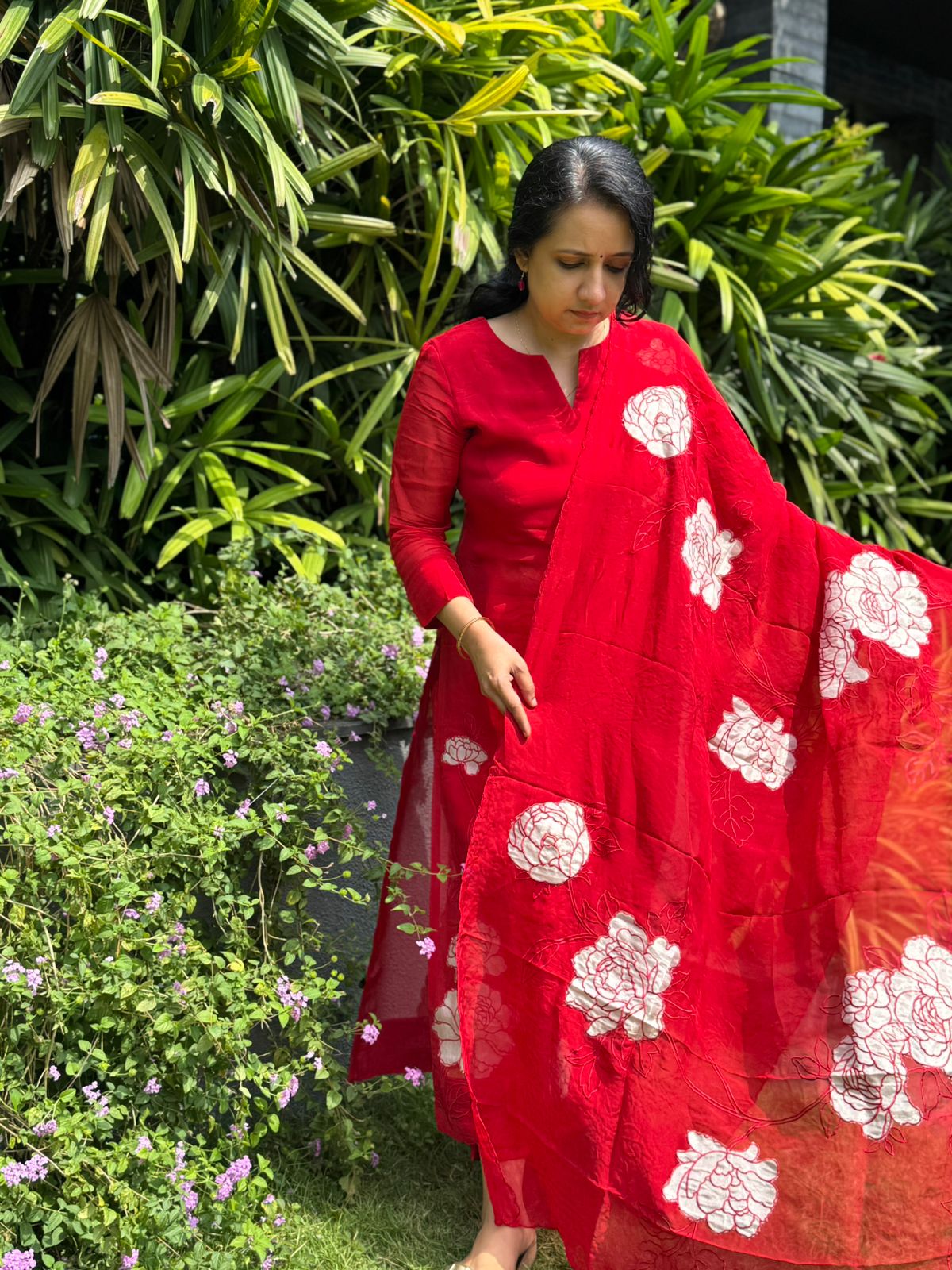 • Presenting out Brand New Collection for Onam at a Special Price of ₹1499/- curated on Chiffon woth Cutwork and beautiful floral embroidery! Ethereal hues of Pink, Pearl Green, Ivory gold, Dusty pink & Jet black on Chiffon top and Duppatta with floral embroidery & Cutwork. The floral embroidery design is created to resemble pearl embroidery. Bottom is cotton silk ₹1,499.00