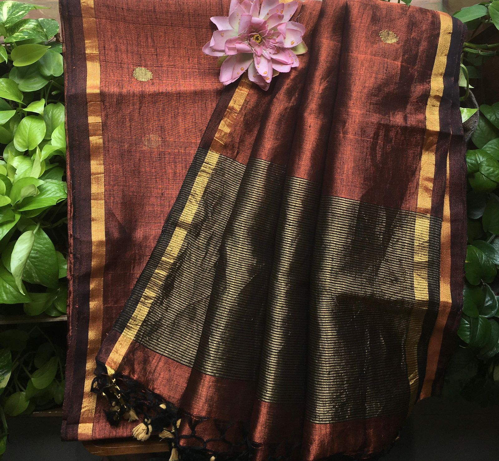 Available on Pre-order!!! A beautiful collection of Pure Tissue linen silk top & Duppatta with stunning Jamdhani hand weaving. No bottom. Bottom Can be customised on request