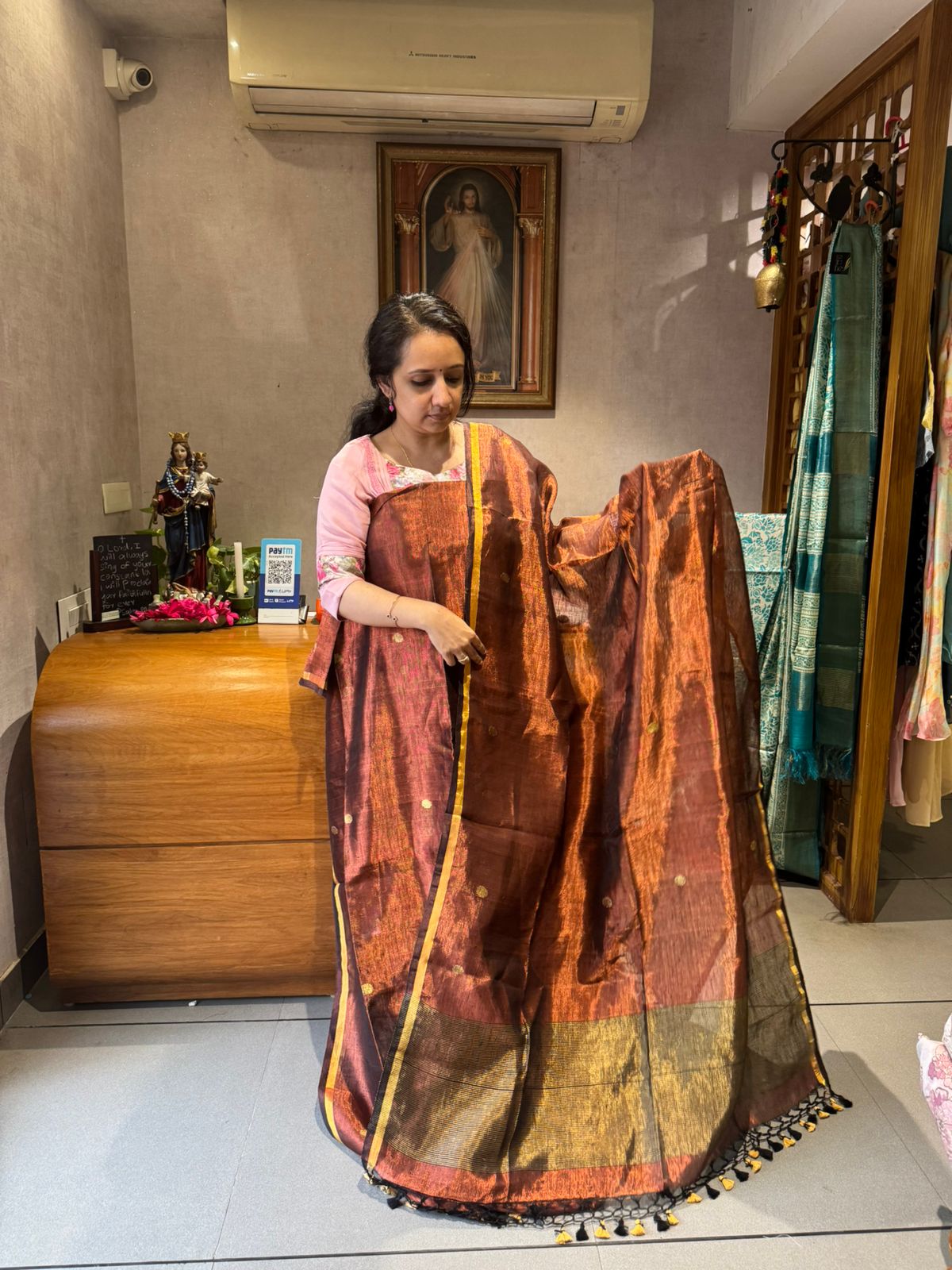 A beautiful collection of Pure Tissue linen silk top & Duppatta with stunning Jamdhani hand weaving. No bottom. Bottom Can be customised on request