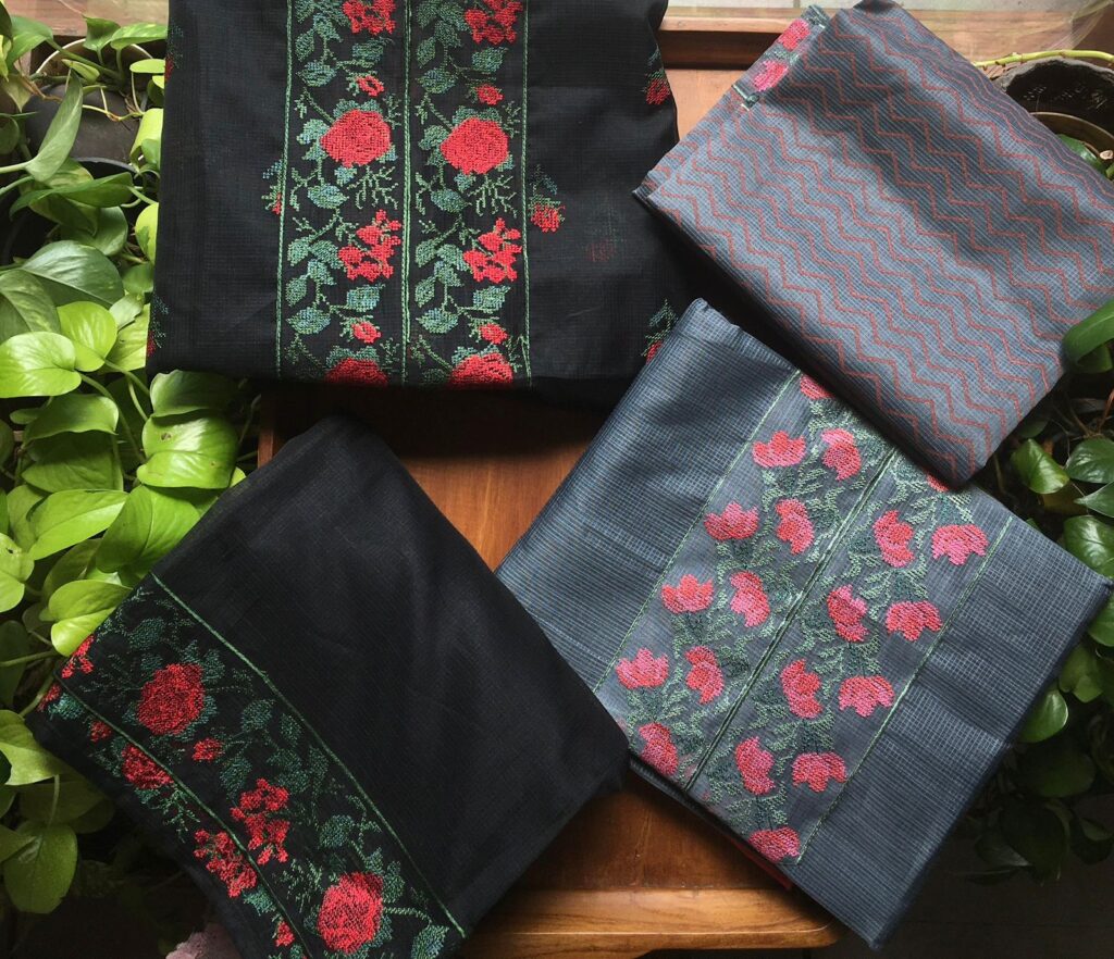 Beautiful Matka silk top & Duppatta with intricate cross stitch embroidery & cotton silk bottom…Limited pieces available!!!Hurry & order these before we run out of them! Perfect choice for gifting your dear ones this festive season