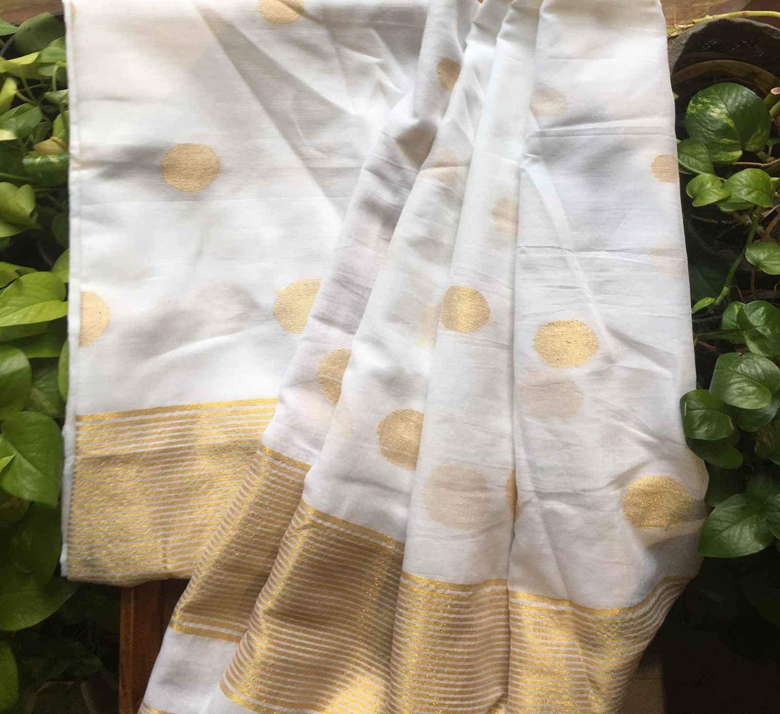 Beautiful & exclusive silk Jamdhani top and Duppatta with complete hand weaving in unique and contemporary polka . No bottom