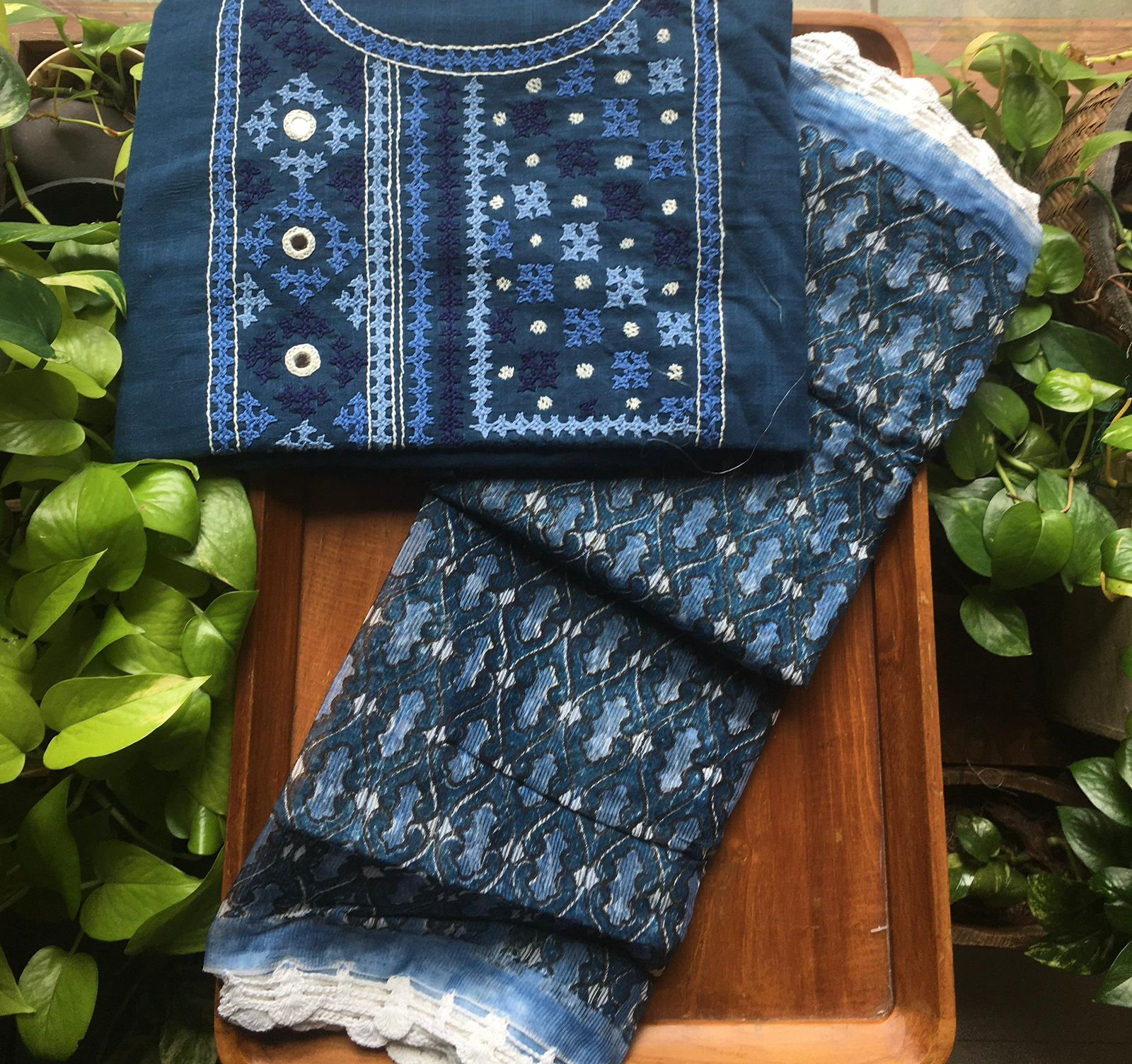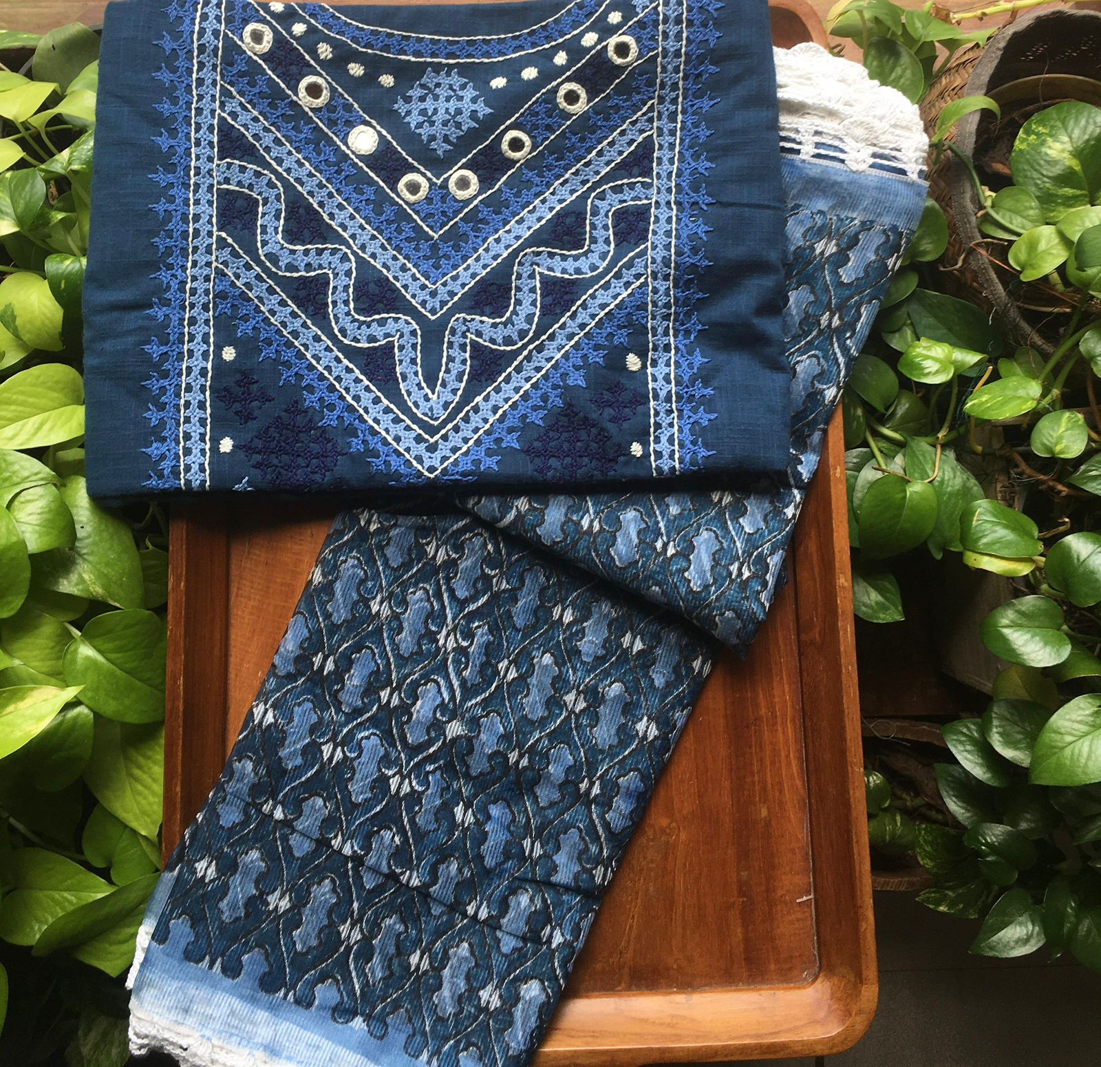 Beautiful pure cotton top with authentic Kutch hand embroidery, cotton botton and block printed Kota silk Duppatta!!! Can be customised additionally. Limited pieces available!!!Hurry and order these before we run out of them! Perfect choice for gifting your dear ones this festive season