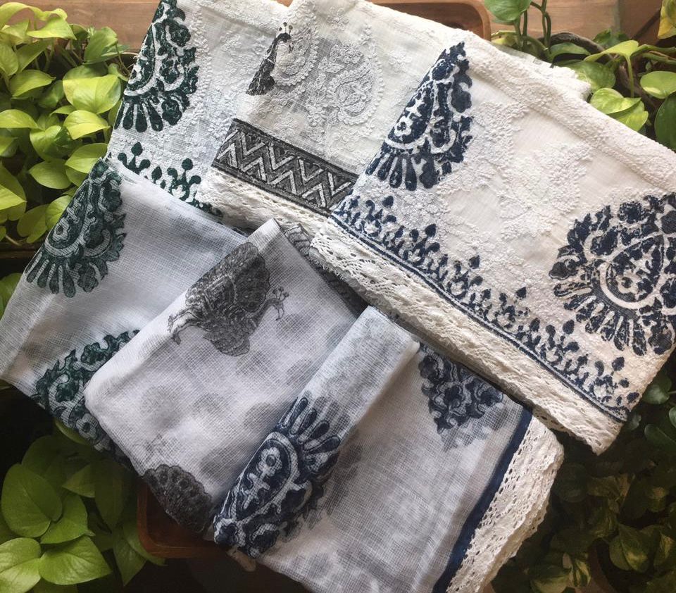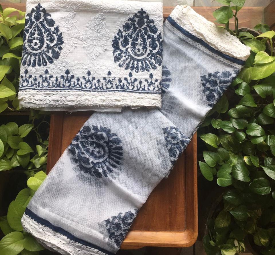 Be the first to review “Beautiful pure Kota Doria top & Duppatta with Lucknow Chikankari embroidery detailing & block prints & cotton bottom !Limited pieces available!!!Hurry & order these before we run out of them! Perfect choice for gifting your dear ones this festive season” Cancel reply
