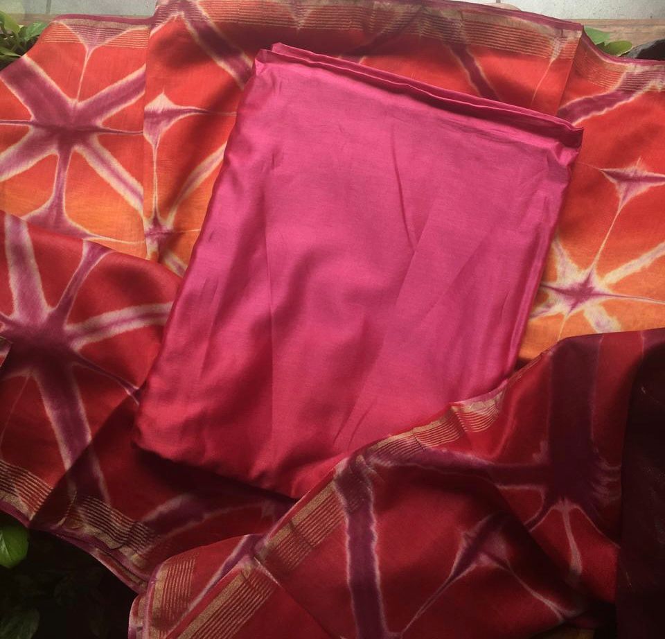 Are you looking out for Beautiful & Unique Maheshwari Suits to add to your wardrobe ? These Hand block printed Shibori Maheshwari’s with ombré dyed tops are the perfect choice! Pure maheshwari top with ombré dyeing , santoon bottom and stunning Shibori hand dyed silk Duppatta