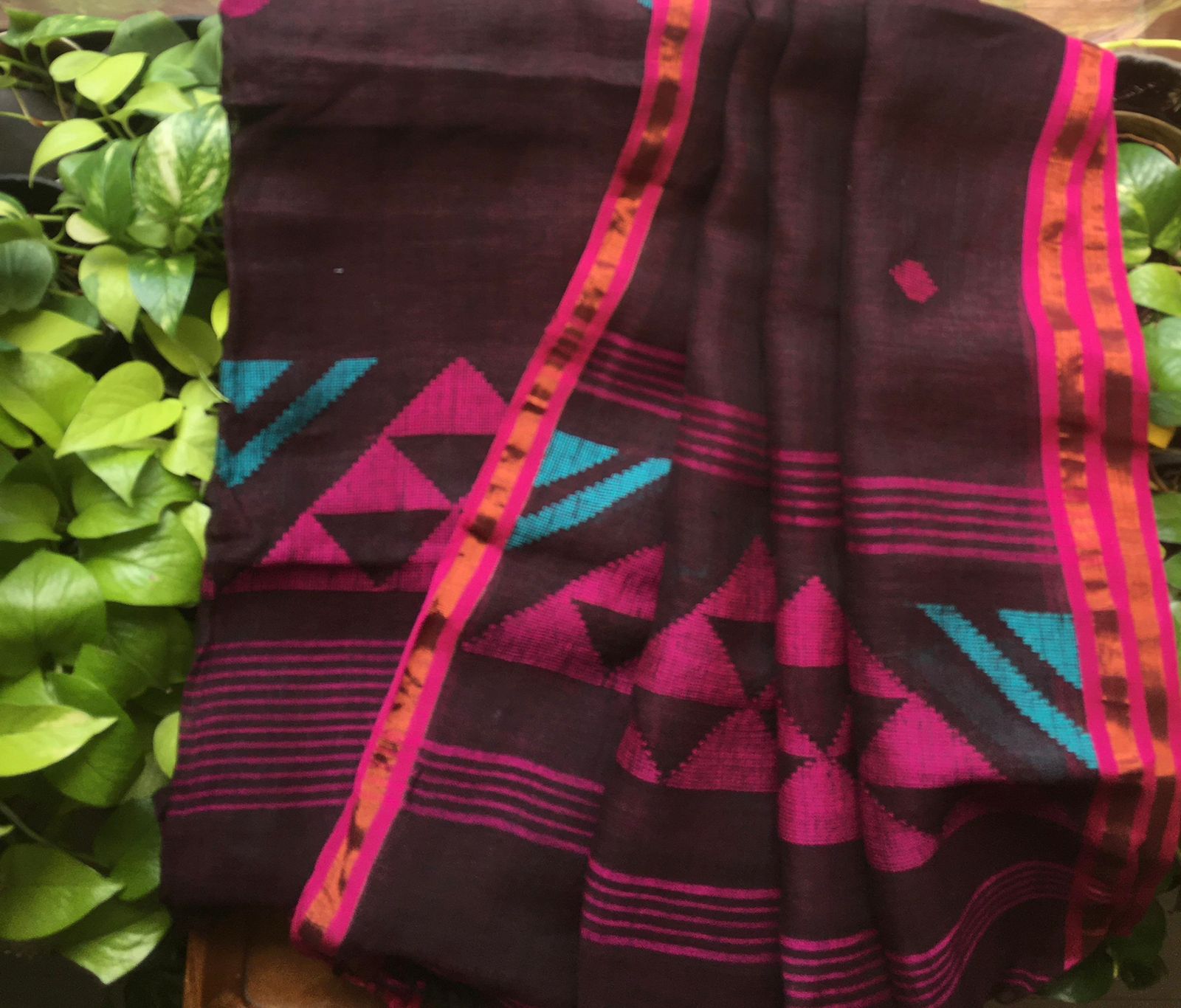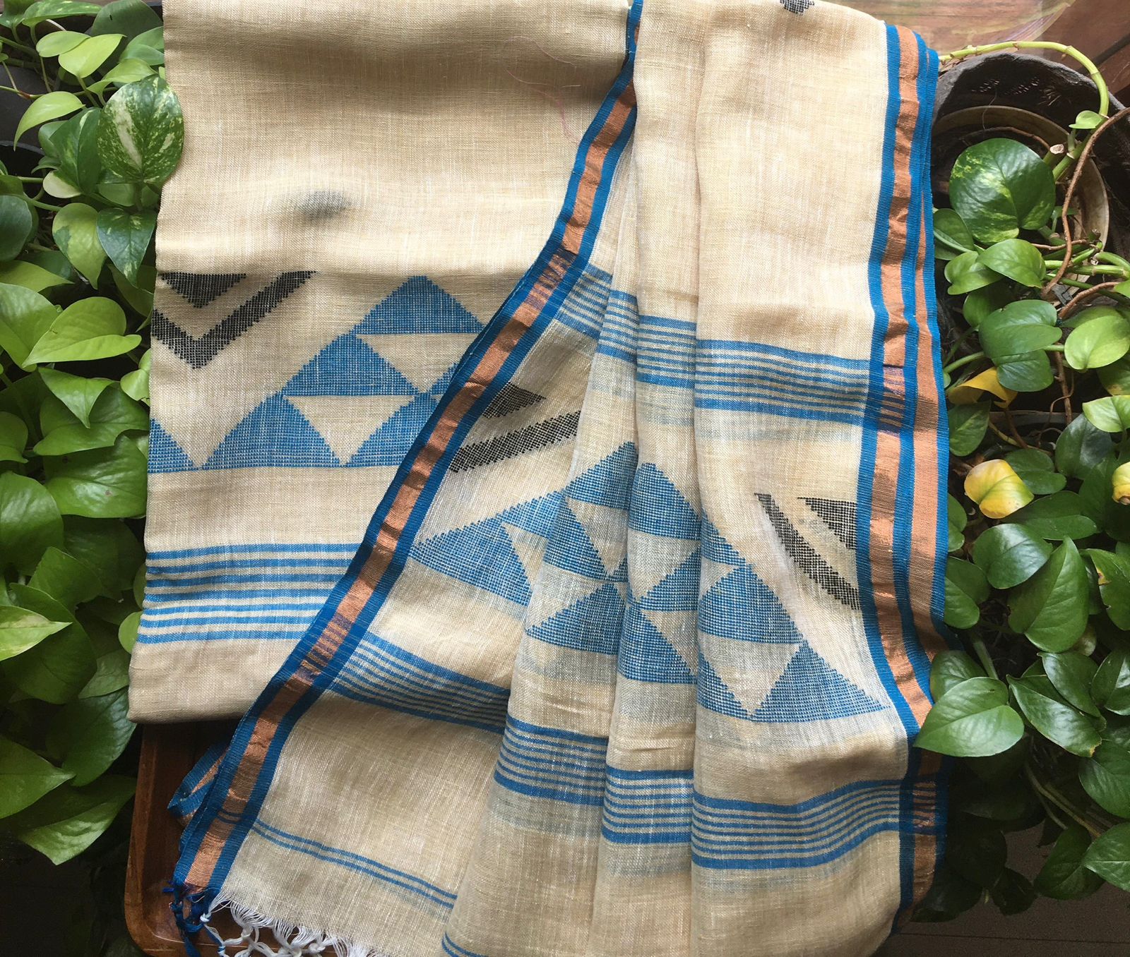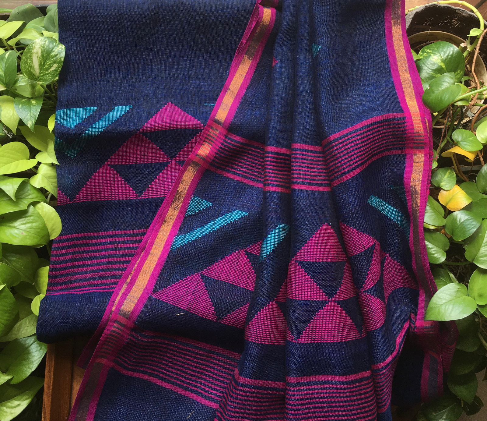 A beautiful collection of Tussar silk sarees with very elegant check weaving on entire saree & borders finished with beautiful cross stitch reminiscent floral embroidery. With blouse pure Benarasi silk