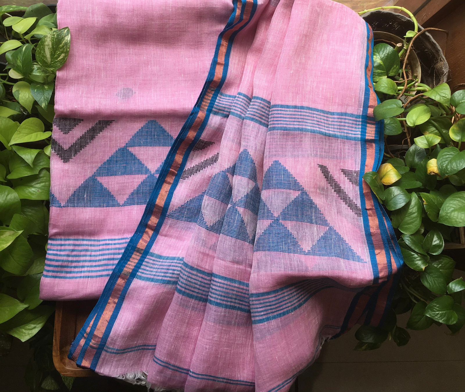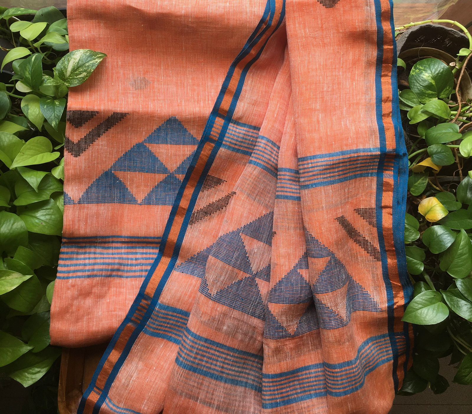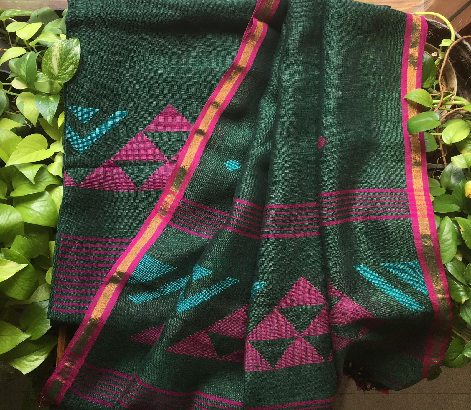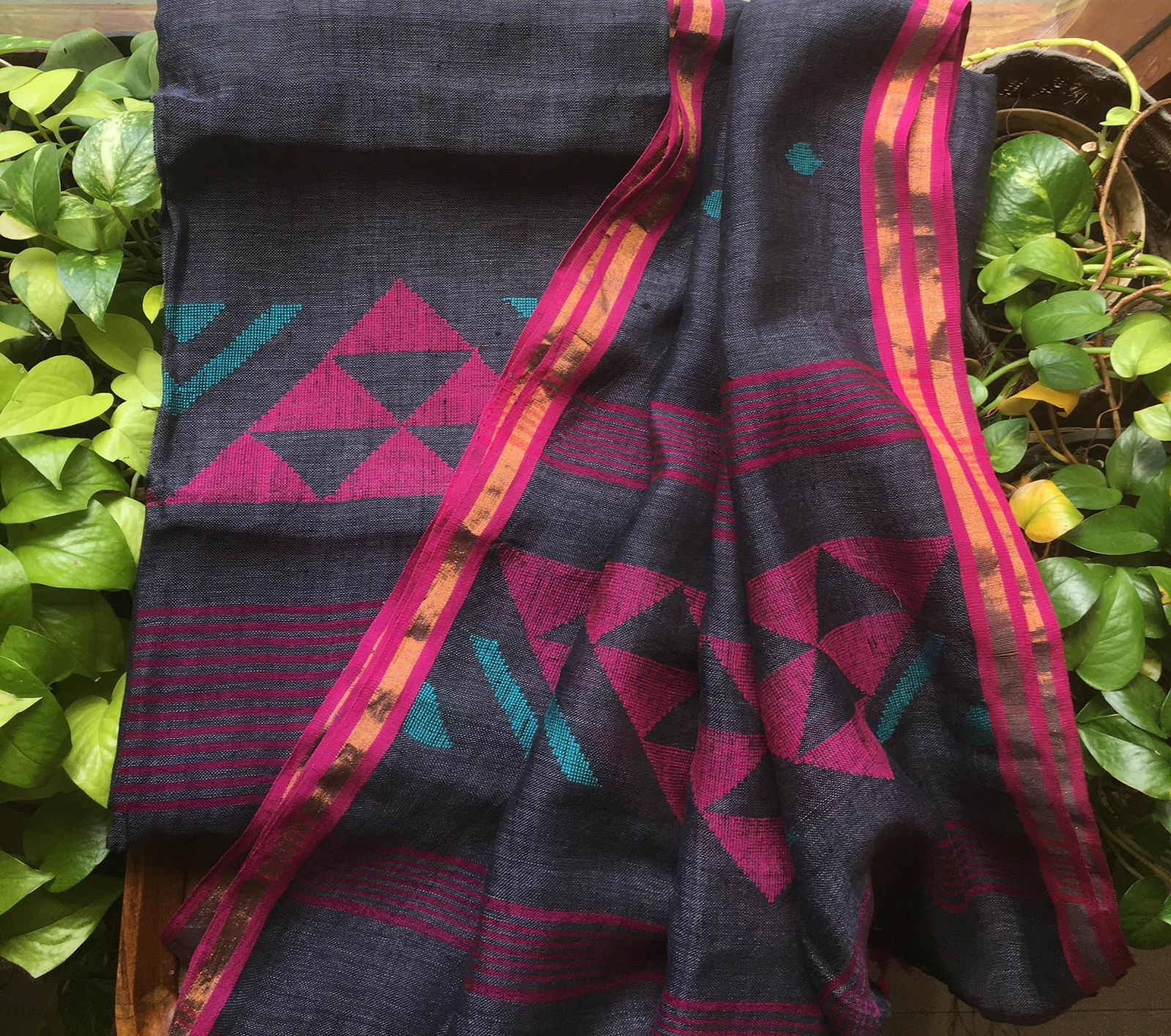 A beautiful collection of Tussar silk sarees with very elegant check weaving on entire saree & borders finished with beautiful cross stitch reminiscent floral embroidery. With blouse pure Benarasi silk