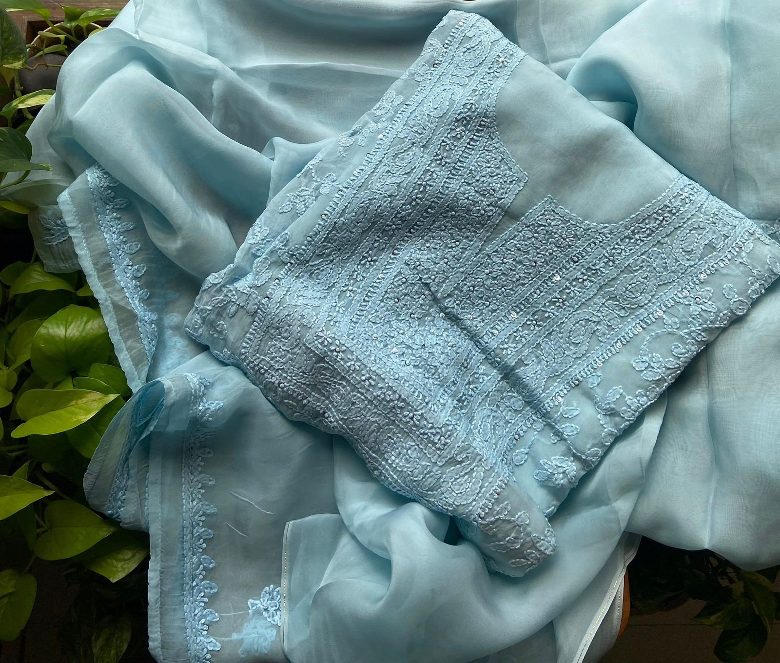 Our most demanded collection of pure organza Chikankaris are now launched !!! Pure organza top & Duppatta with Lucknow Chikankari hand embroidery throughout & santoon bottom !!! The beautiful handpicked colors & the exquisite embroidery makes these premium festive wear.Limited pieces available!!!Hurry & order these before we run out of them! Perfect choice for gifting your dear ones this festive season