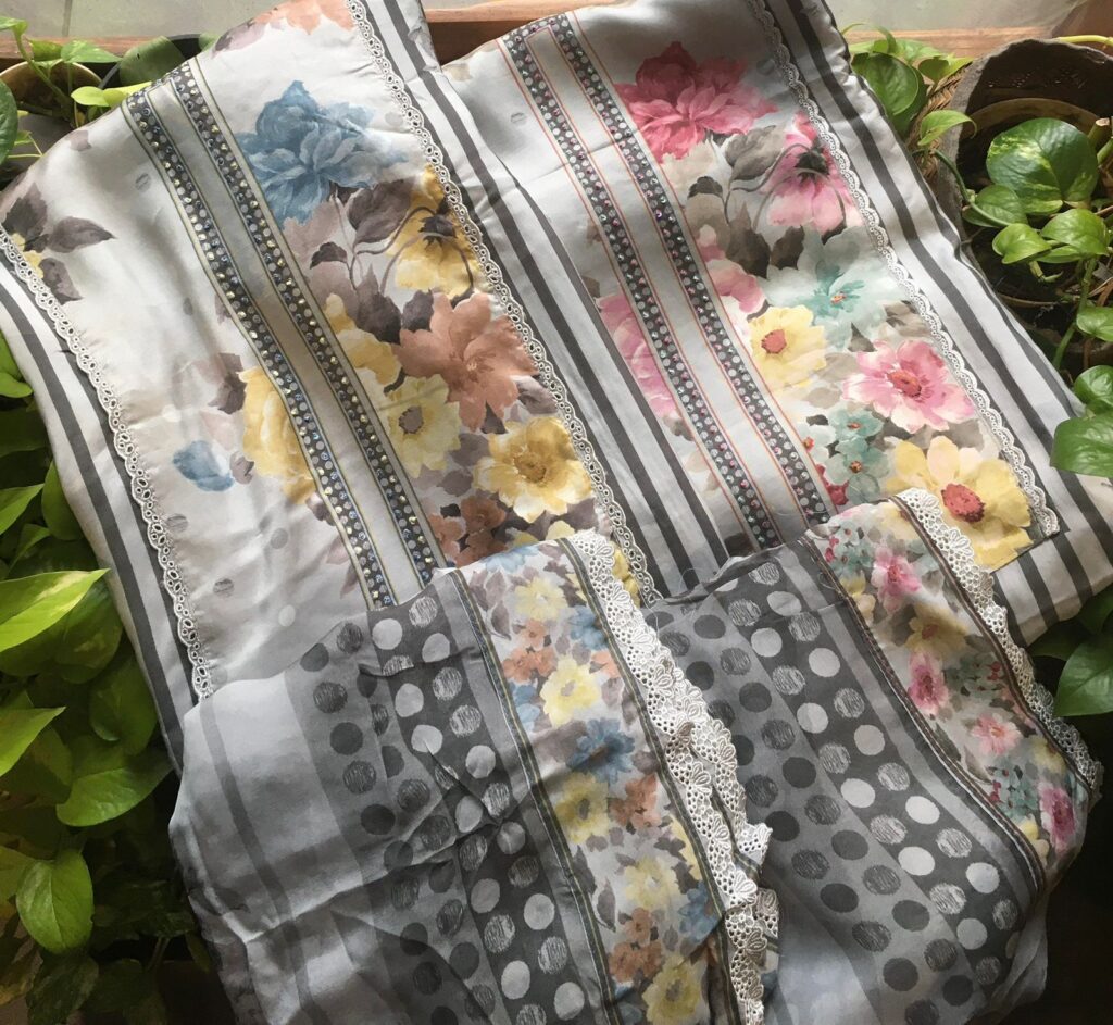 Beautiful pure muslin silk top & Duppatta with intricate embroidery & stunning Ajrak prints & santoon bottom!!!Limited pieces available!!!Hurry & order these before we run out of them! Perfect choice for gifting your dear ones this festive season