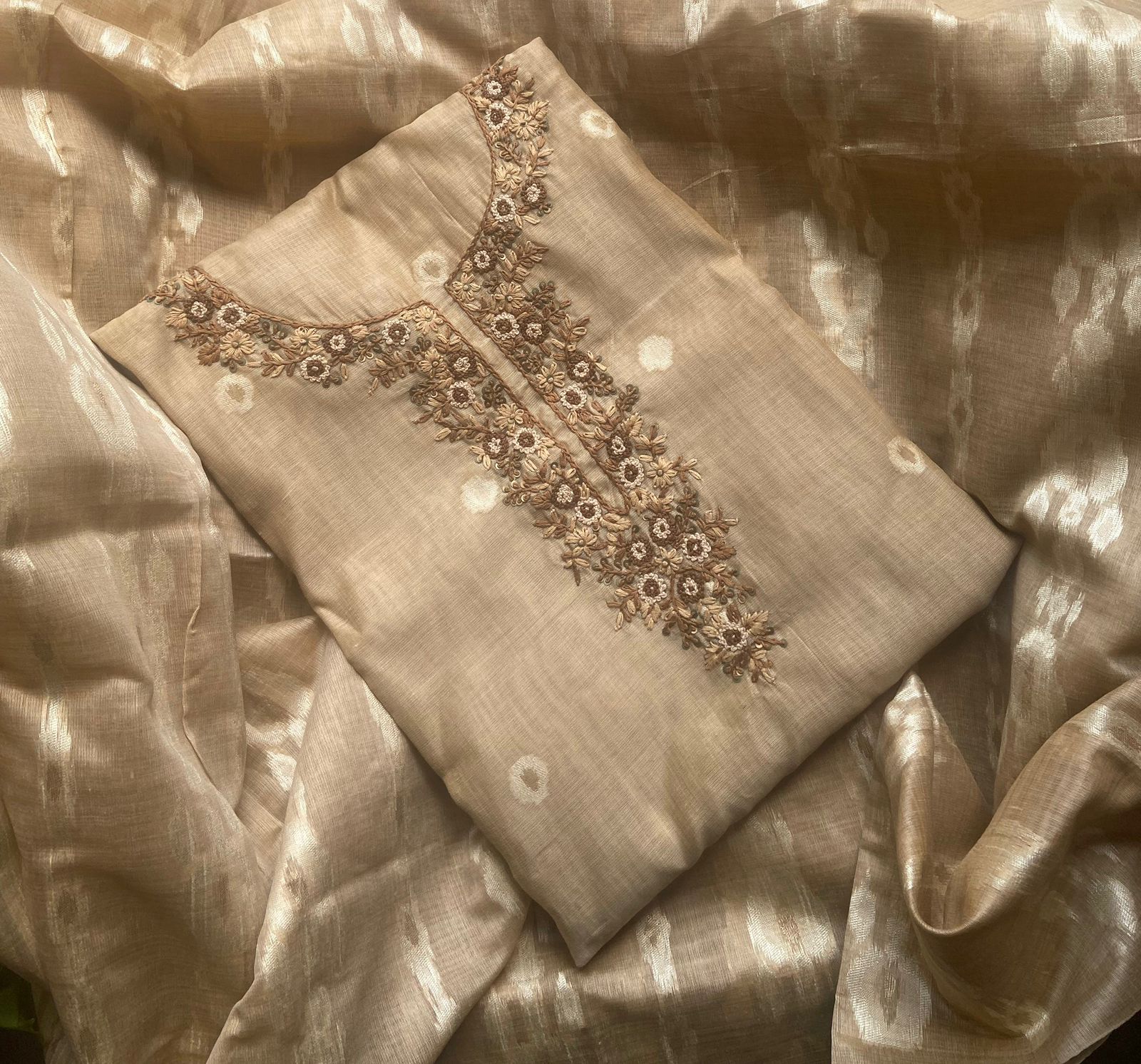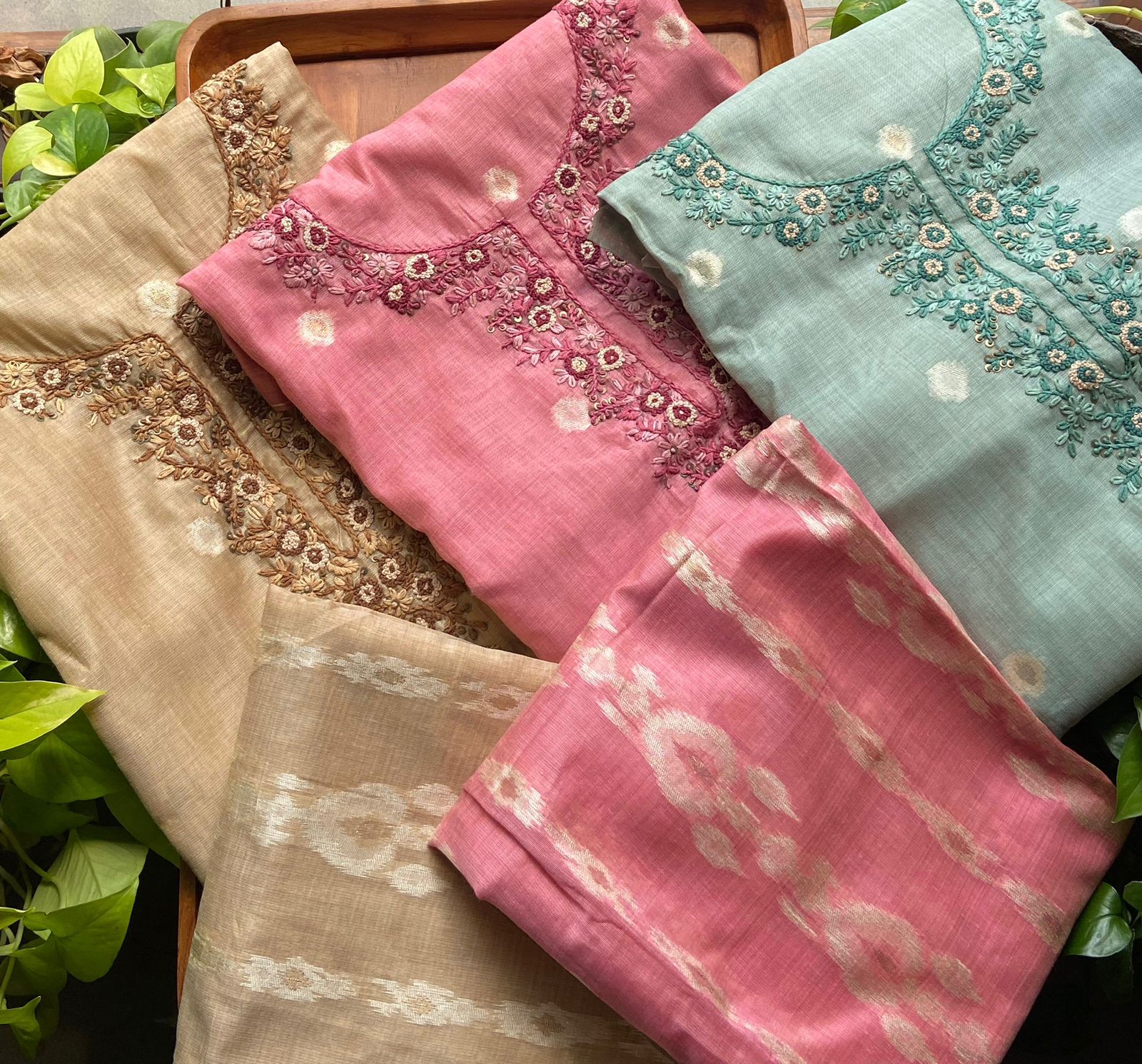 Presenting a stunning collection of pure Chandheri silk top & Duppatta with beautiful Jamdhani hand weaving & embroidery & santoon bottom !!!Hurry and order these before we run out of them! Perfect choice for gifting your dear ones this festive season