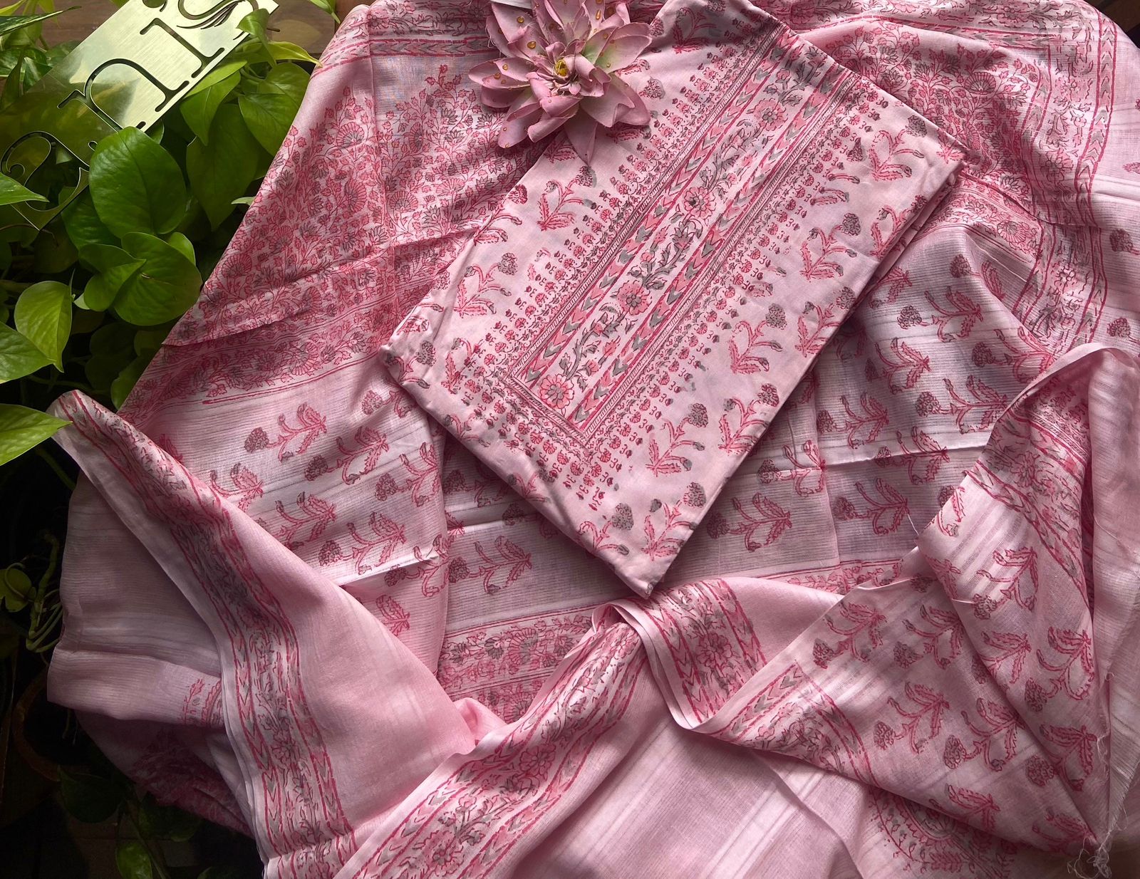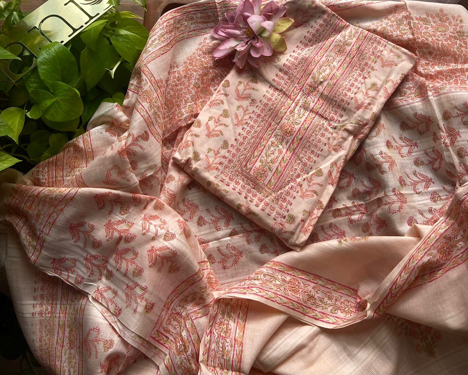 Presenting a stunning collection of pure muslin cotton top & Duppatta with hand block prints & cotton bottom