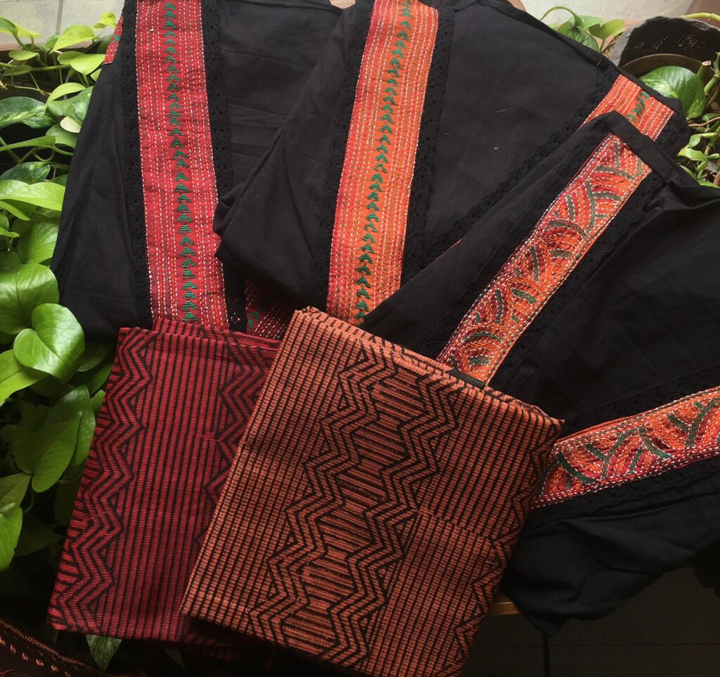 • Are you looking out for Beautiful & Unique Designer wear suits in Cottons to add to your wardrobe ? These Kanta worked cottons are the perfect choice!Pure cotton top with Kanta work detailing at neckline , cotton bottom & matka silk duppatta with stunning block prints ₹2,990.00