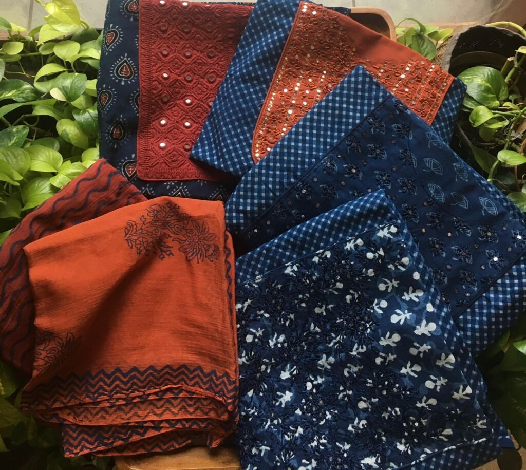 • A beautiful collection of soft muslin cotton top & bottom with block prints & pretty chiffon Duppatta with hand crochet !!! Limited pieces available!!!Hurry & order these before we run out of them! Perfect choice for gifting your dear ones this festive season ₹2,450.00
