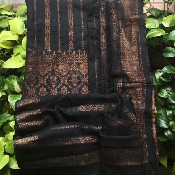 A stunningly gorgeous collection of Khadi benarasi top & Duppatta with beautiful antique weaving in stunning vertical lines . Santoon bottom